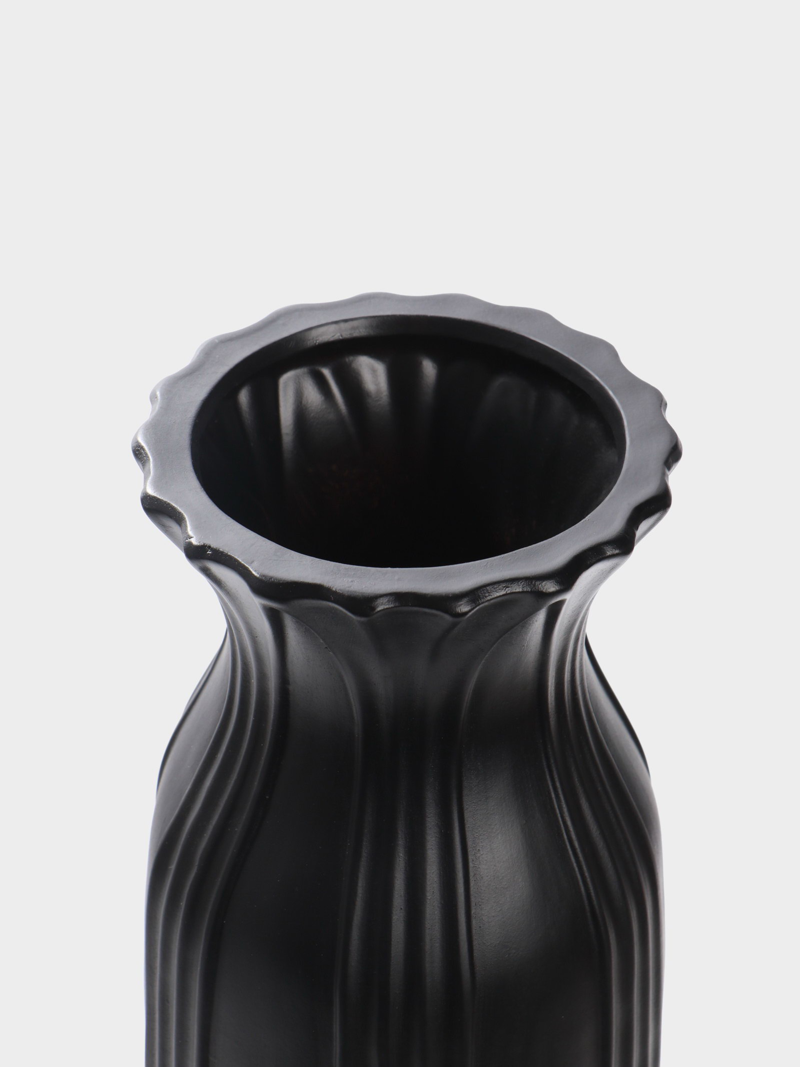 Размер упаковки: 17 x 62 x 18 см. tnved: 6913910000 Запрет реализации по сегментам: 00000000272 Цвет: Чёрный Вид вазы: Напольная Высота, см: 61 Текстура: С рельефом Создайте акцент в интерьере с помощью выразительной формы. Напольная ваза "Боливар" из чёрной керамики это скульптурный объект для вашего пространства. Её высота и рельефная поверхность притягивают взгляд, добавляя обстановке характер и глубину.