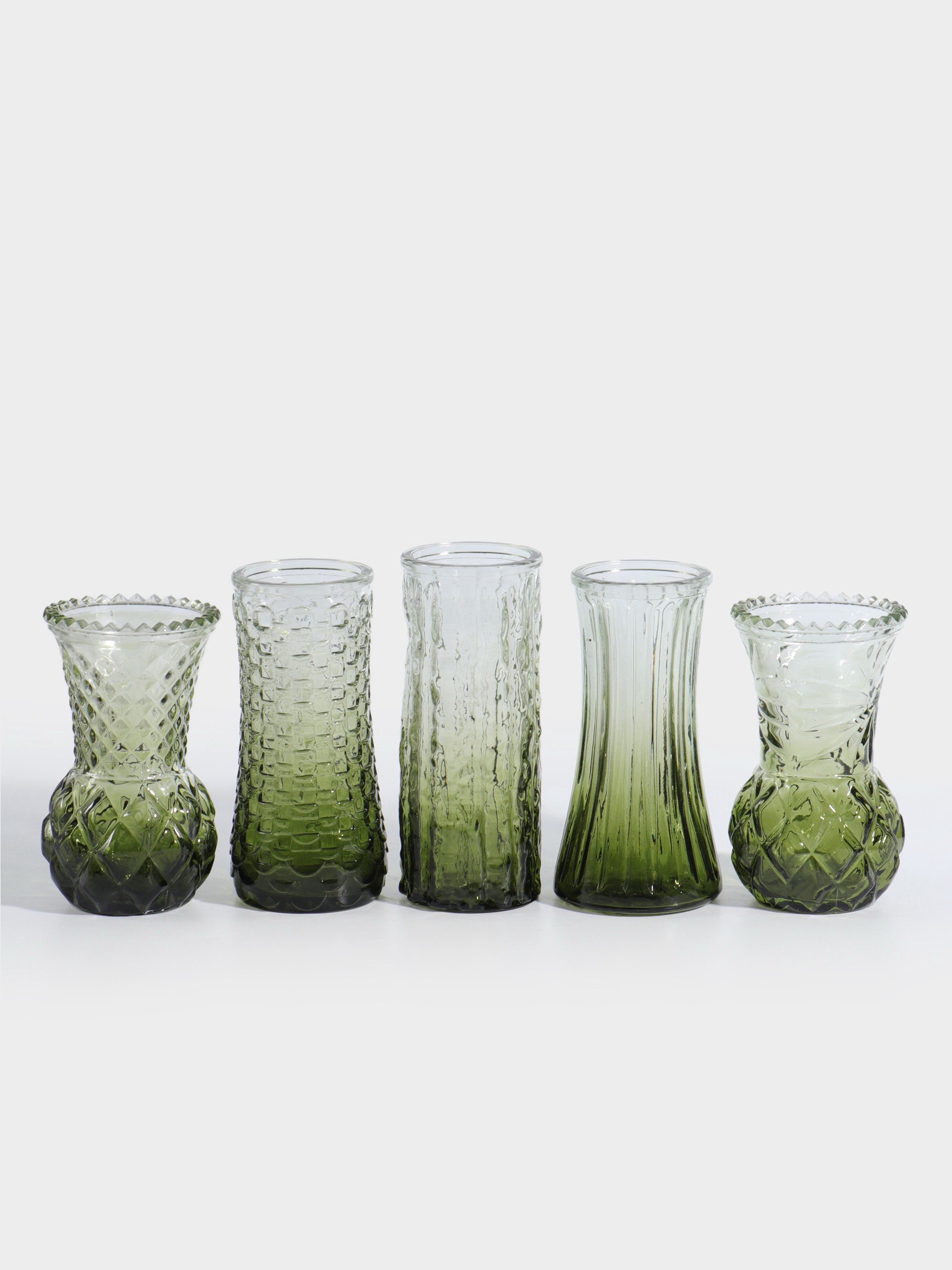 Вазы для цветов "Миниатюра", 11.5-13 см, набор 5 шт., стекло, зелёные, Китай