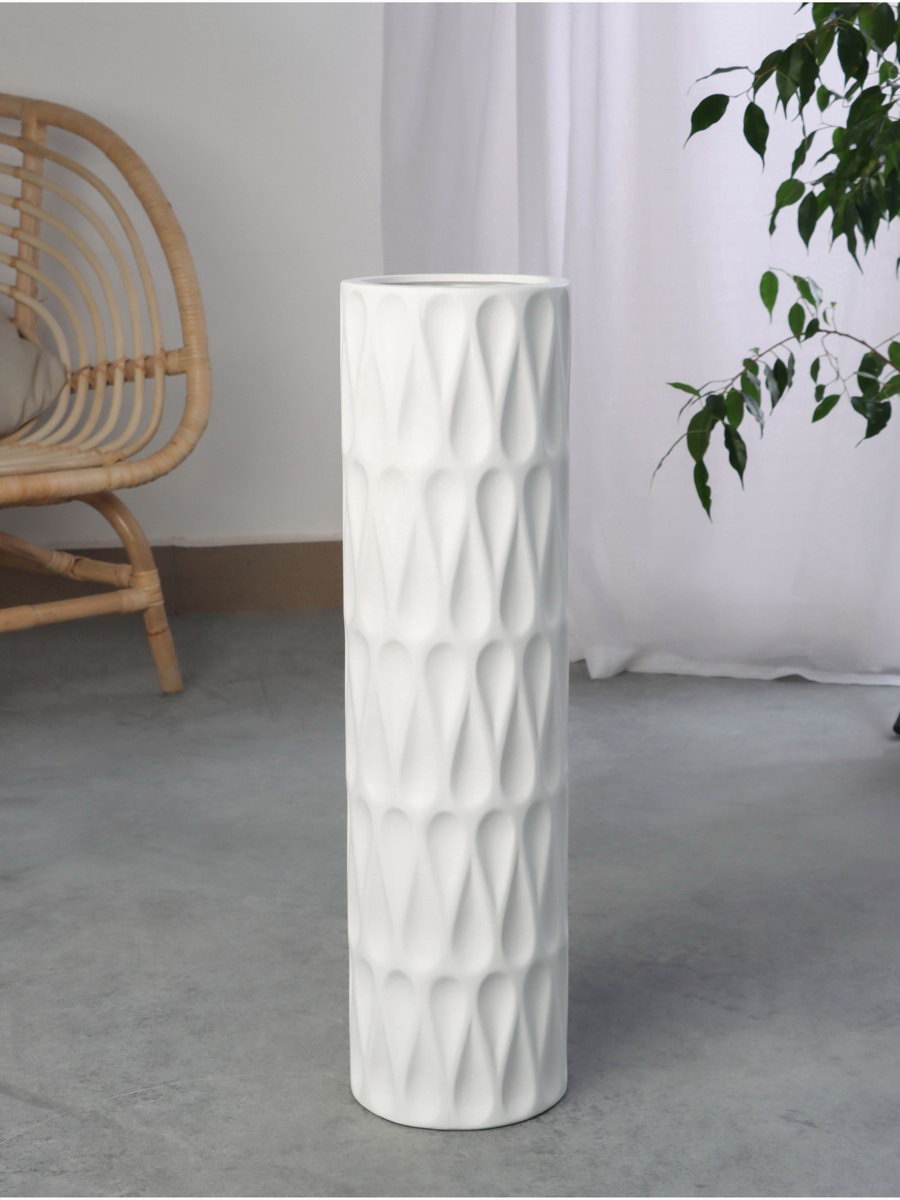 Ваза напольная "Бруно", 58x15 см, керамика, белая, 15x58 см., Китай