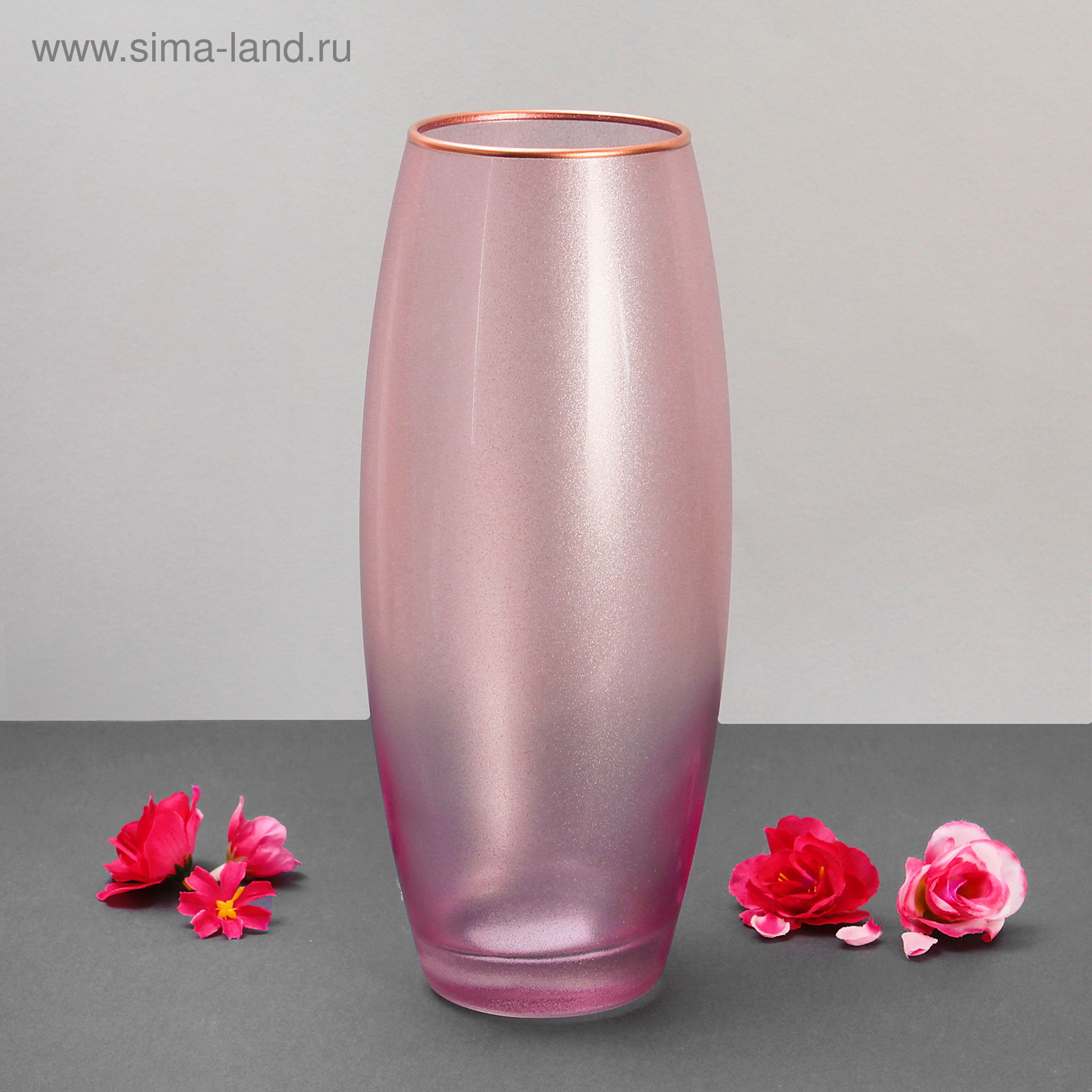 Ваза "Симфония" розовая металик 8х11х26 см, 11x11x26 см., Россия