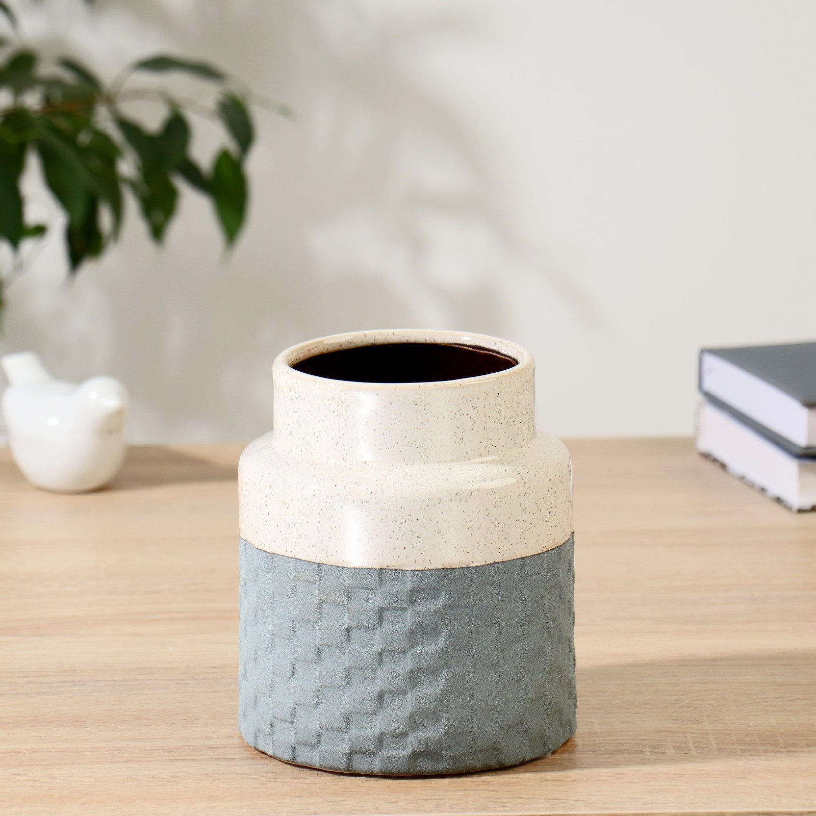 Ваза "Пейтон" круглая, h=14.5 см, d=9.5 см, керамика, бело-серая, 12.5x9.5x14.5 см., Китай