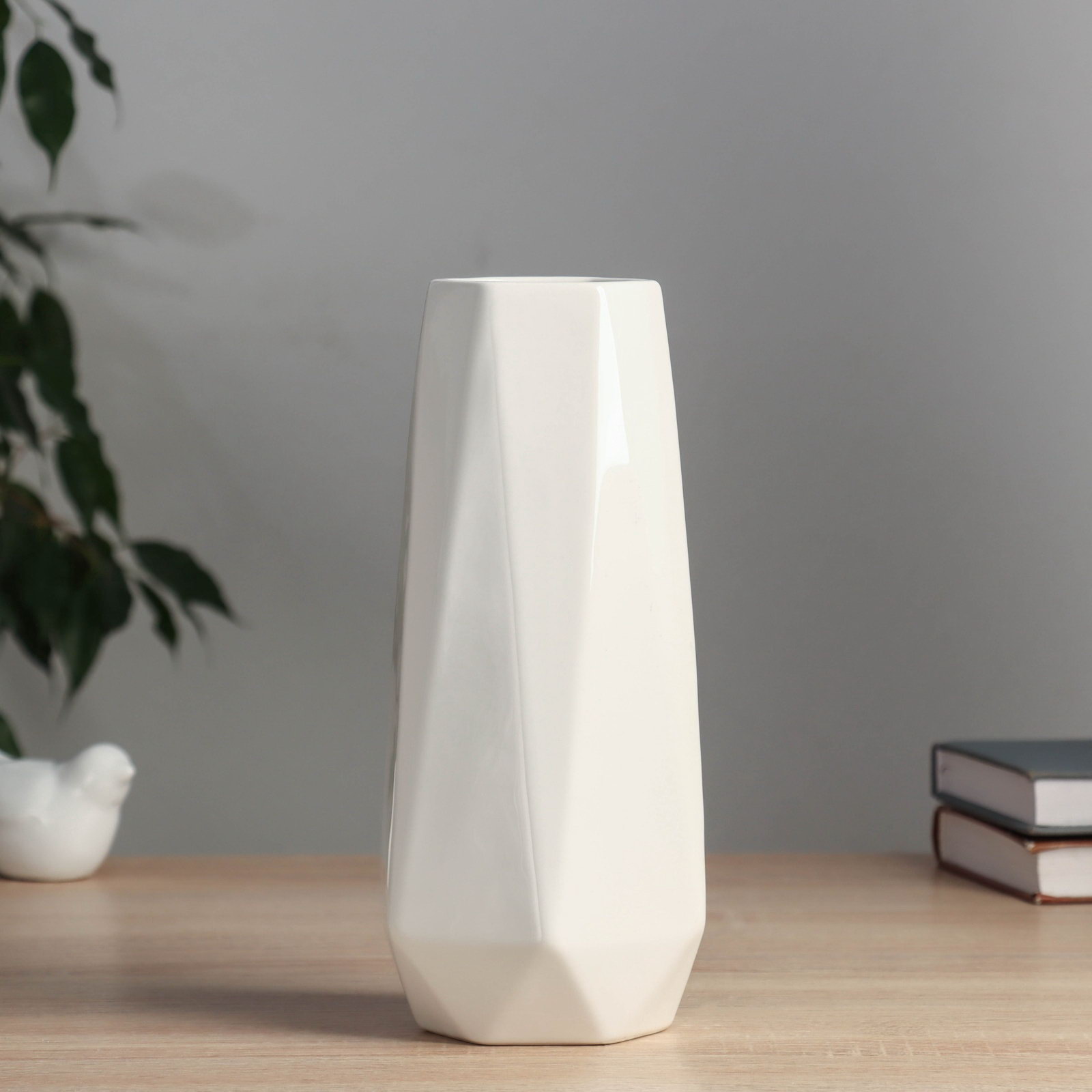 Керамическая ваза декоративная настольная "Герберт", для цветов, сухоцветов, d-7 см, 24x10 см, белый, 10x24 см., Китай