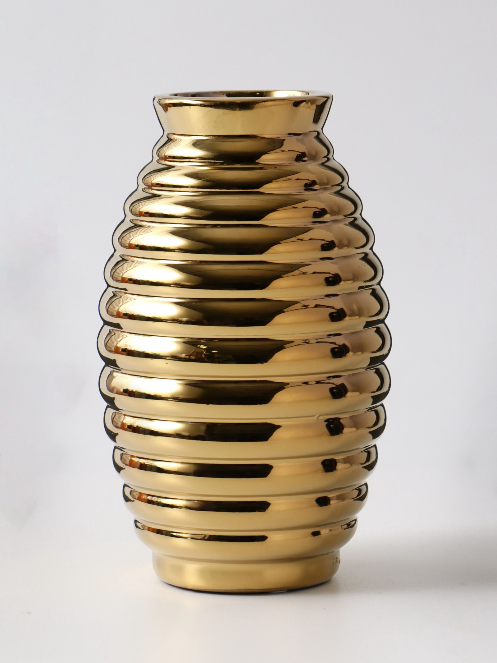 Ваза "Дайзи", полосы, 20x11x7 см, керамика, золото, 11x7x20 см., Китай