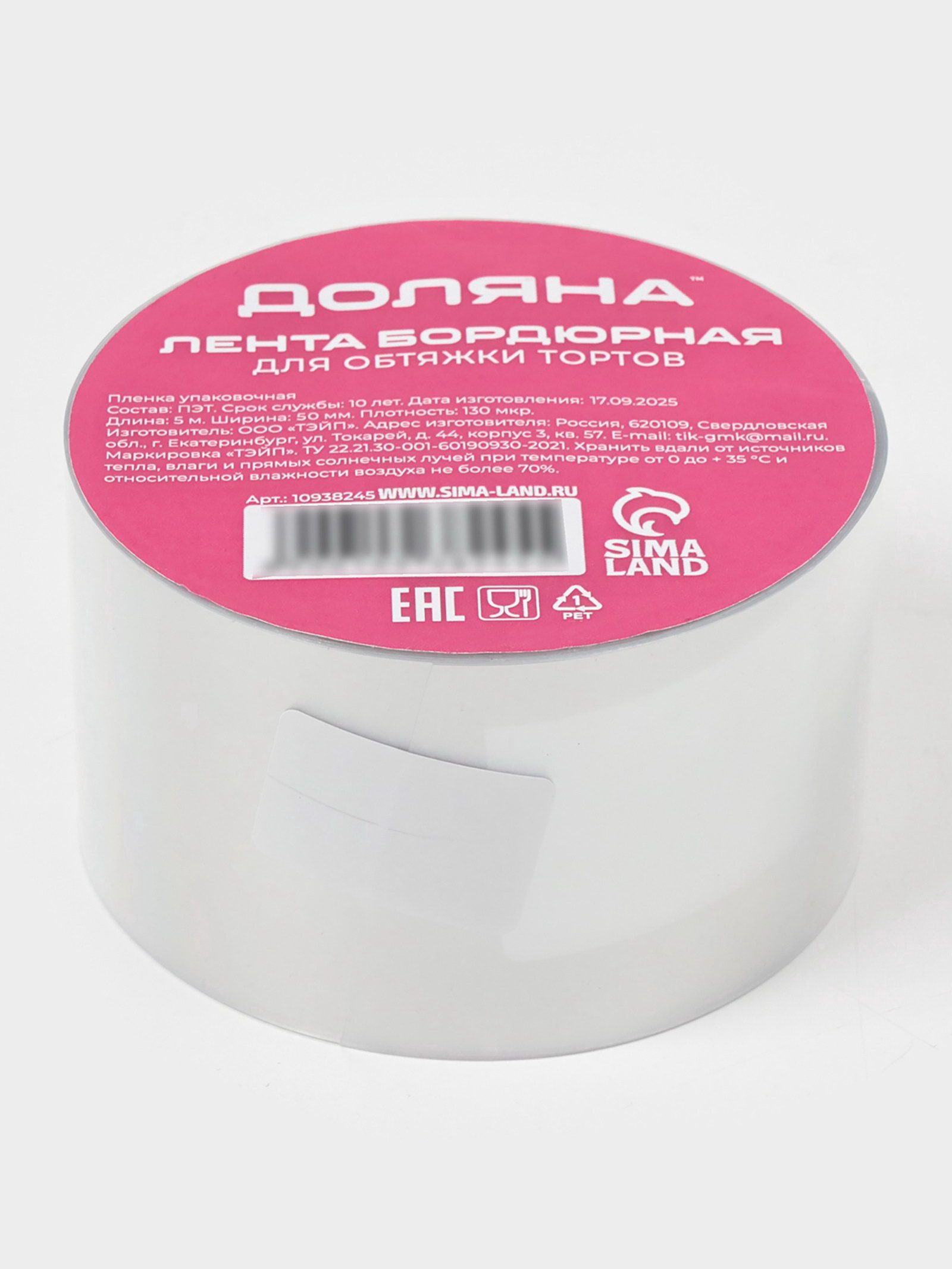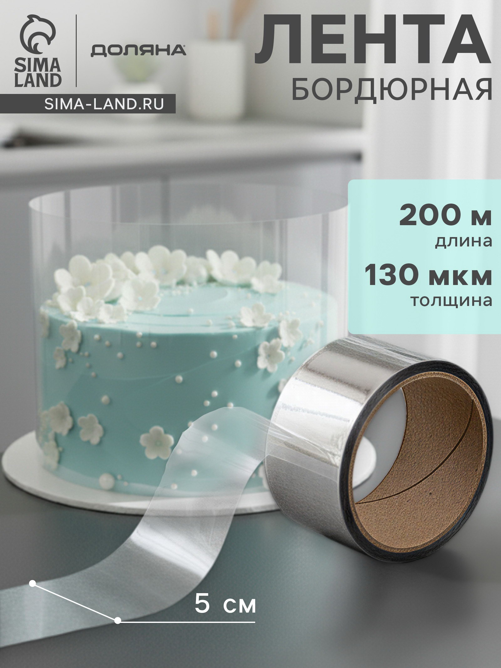 Лента ацетатная для обтяжки тортов 130 мкр, 50 ммx200 м, прозрачная, Доляна, Россия