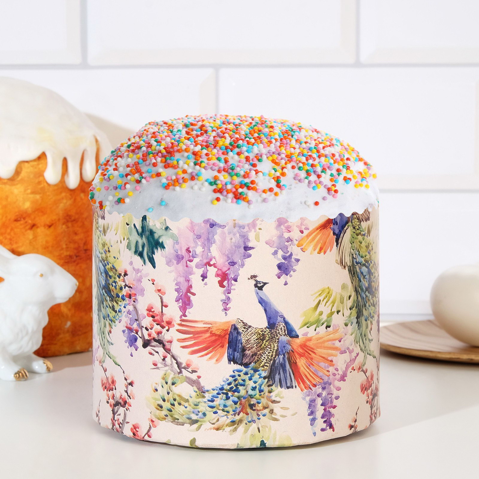 Форма для выпечки кулича "Павлины", бумага, 13.4x10 см, разноцветная, 13.4 см., Деко-про, Россия