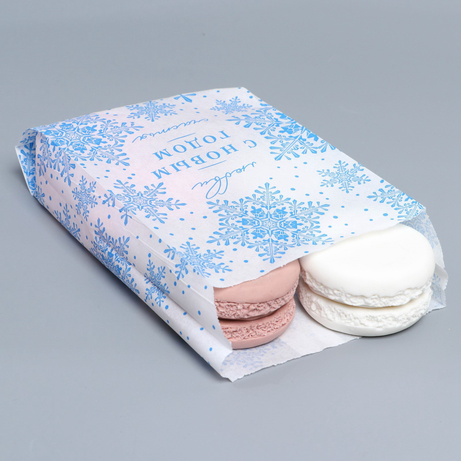 Пакет бумажный фасовочный, крафт, V-образное дно "С Новым годом!", 20 x 11 x 4 см, Дарите Счастье, Россия