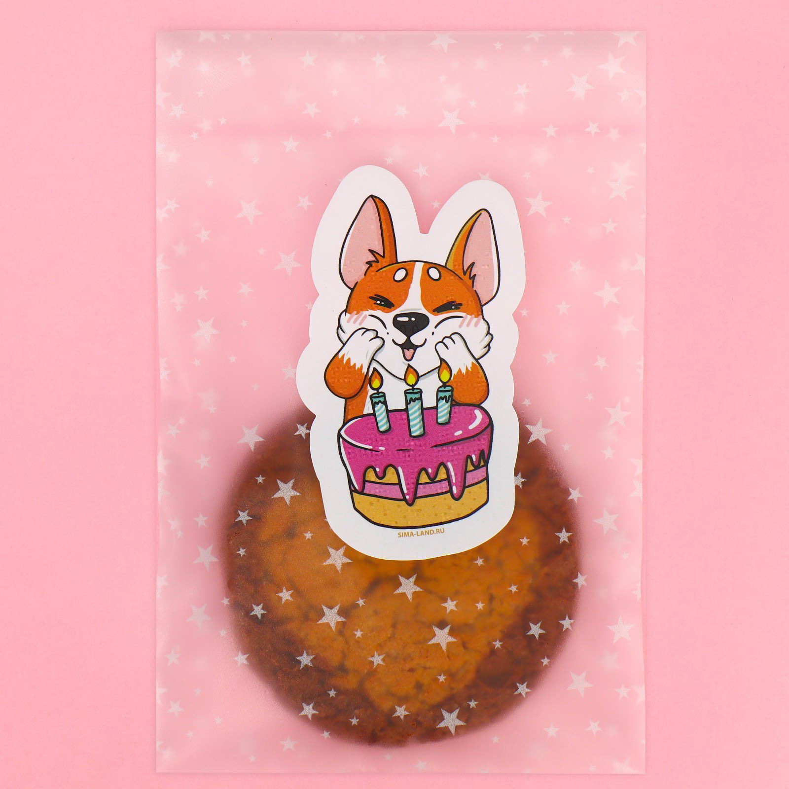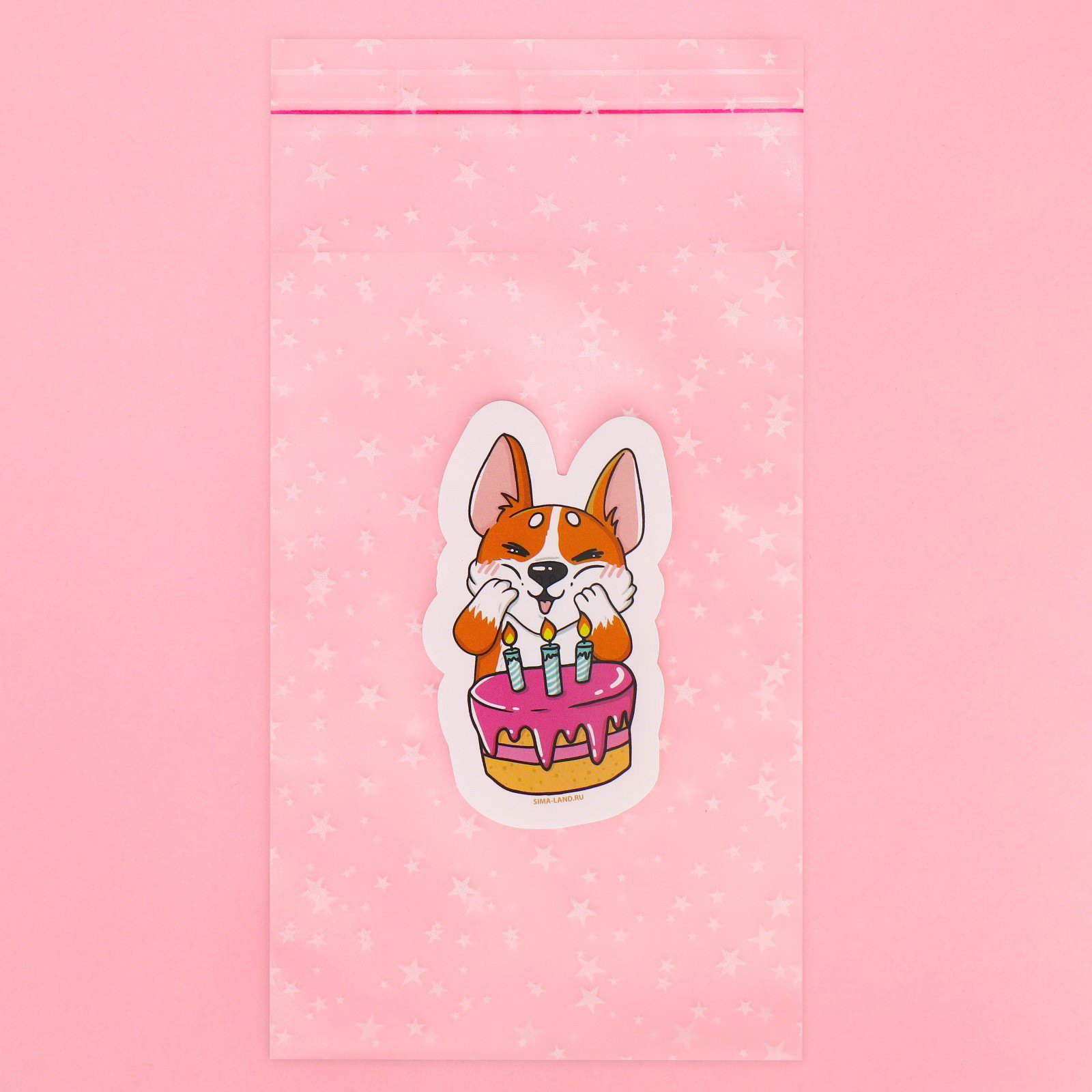 Пакетик под сладости "Корги и тортик", 10 x 15 см, 0.1x10x15 см., Дарите Счастье, Китай