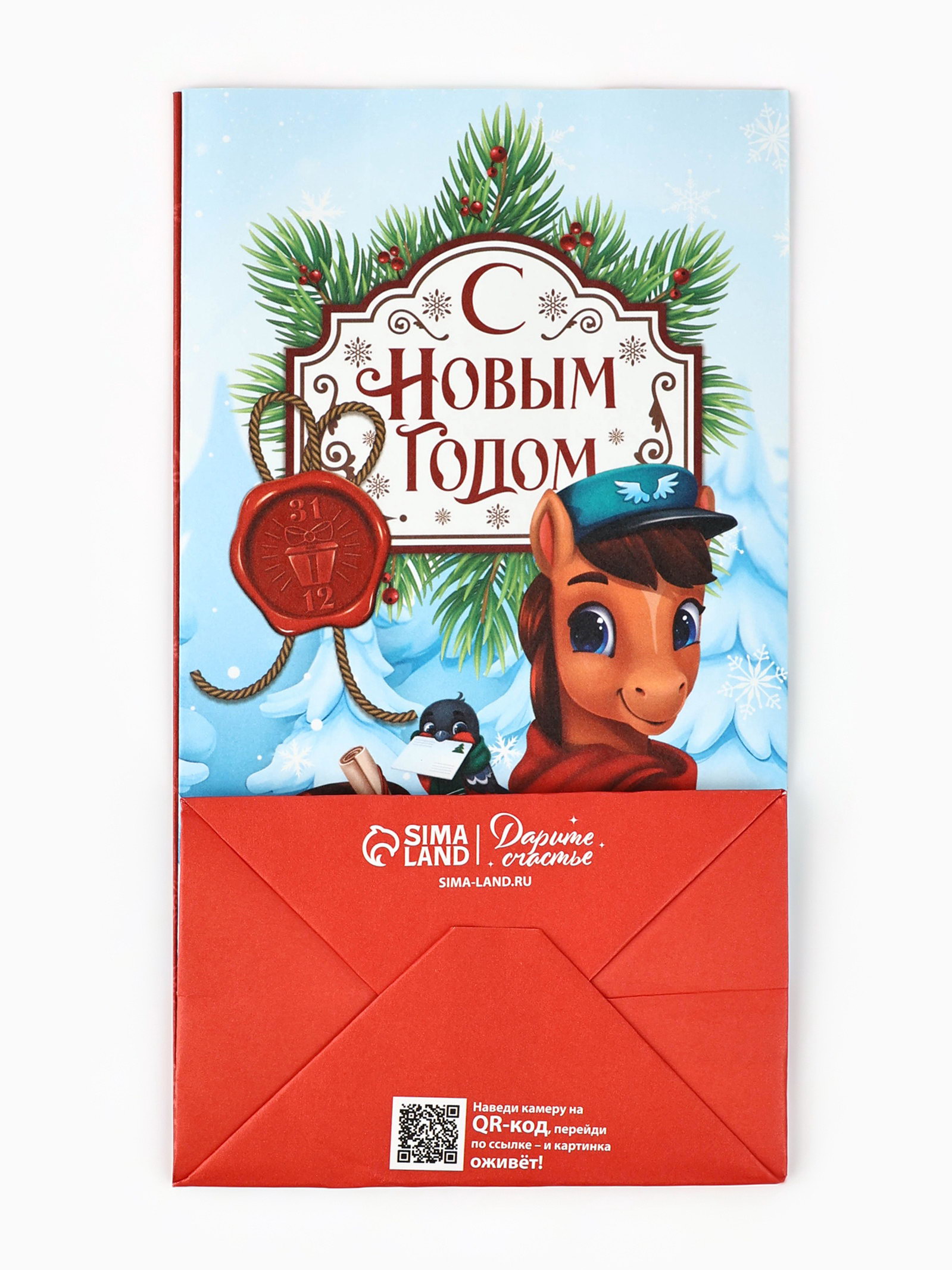 Пакет подарочный без ручек "С Новым 2026 годом лошади", 10x19.5x7 см, 7x10x19.5 см., Дарите Счастье, Китай