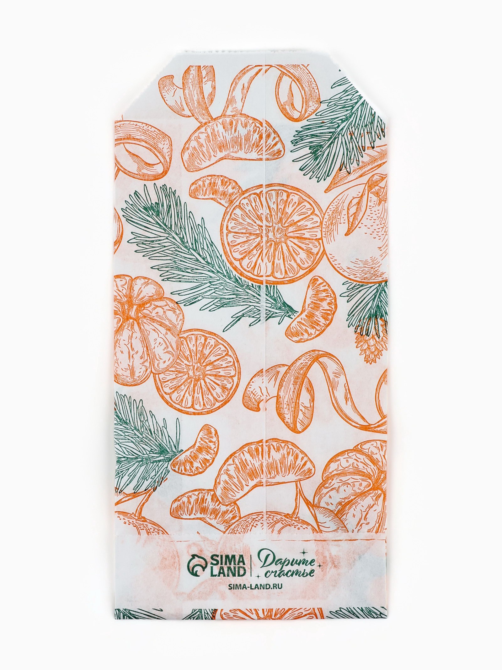 Пакет фасовочный новогодний крафтовый "Сочные мандарины", 8x16 см, без окна, Дарите Счастье, Россия