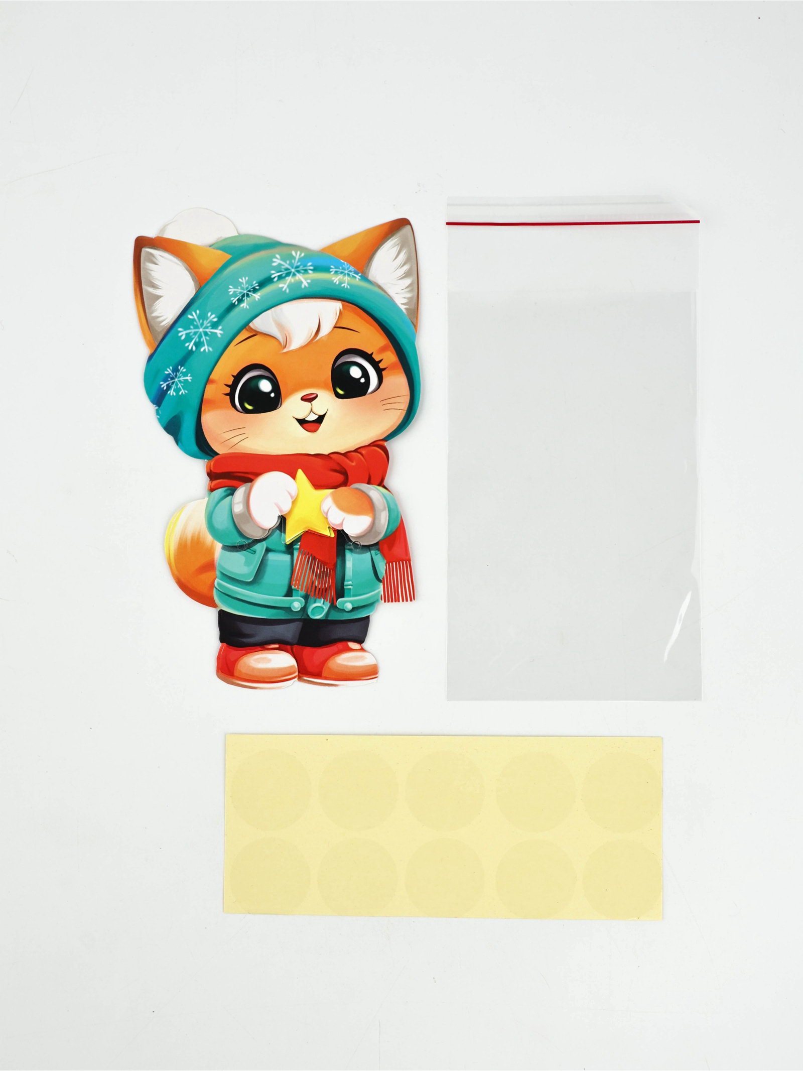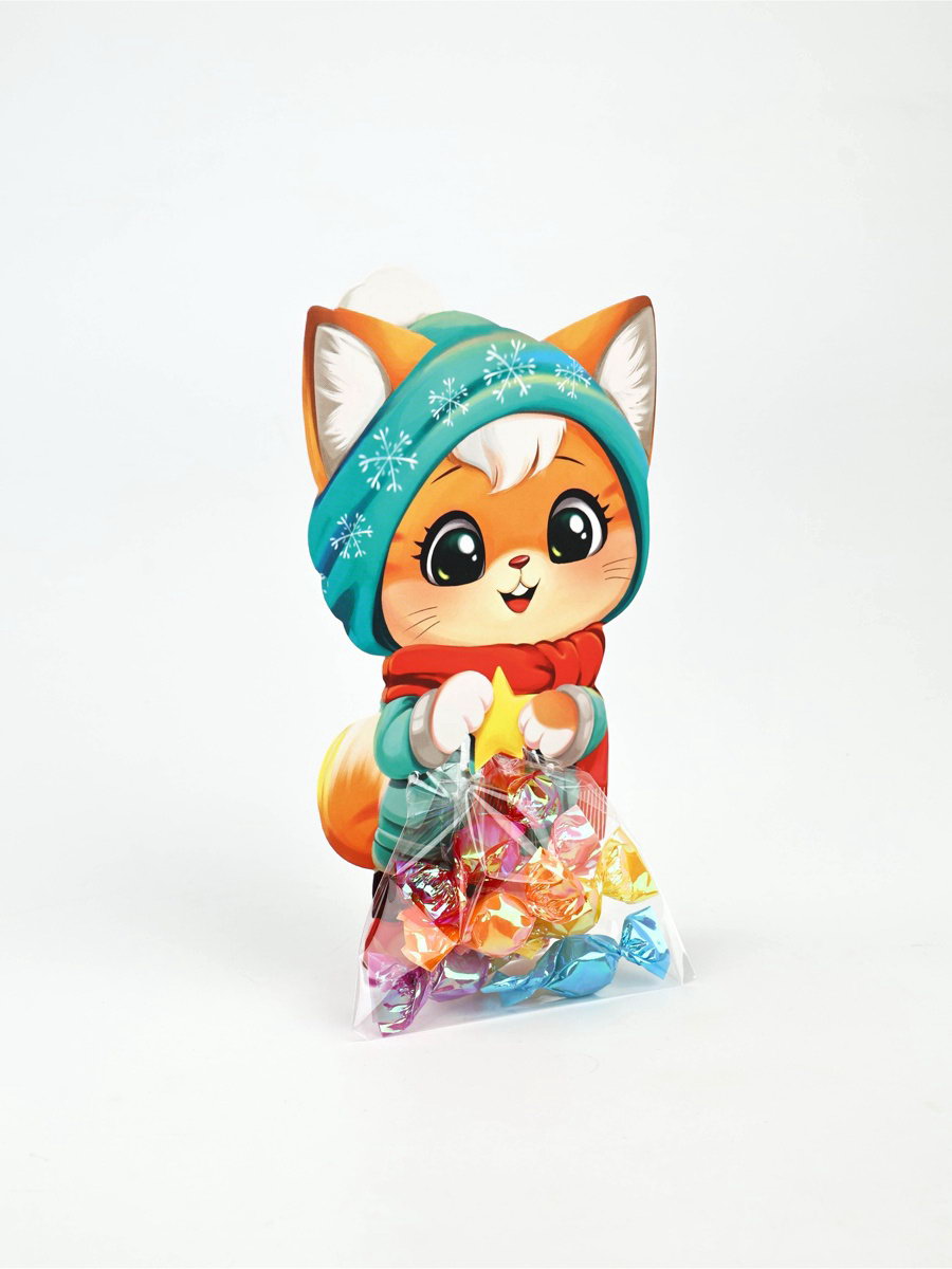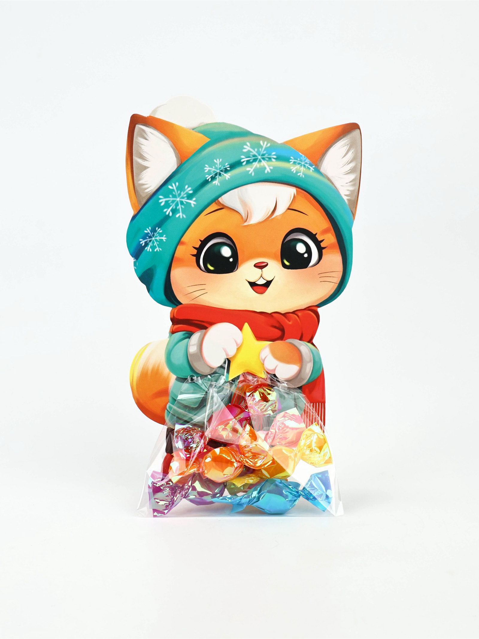 Пакетик под сладости на Новый год "Зимний котик", 6x11 см, 16x11x0.1 см., Дарите Счастье, Китай