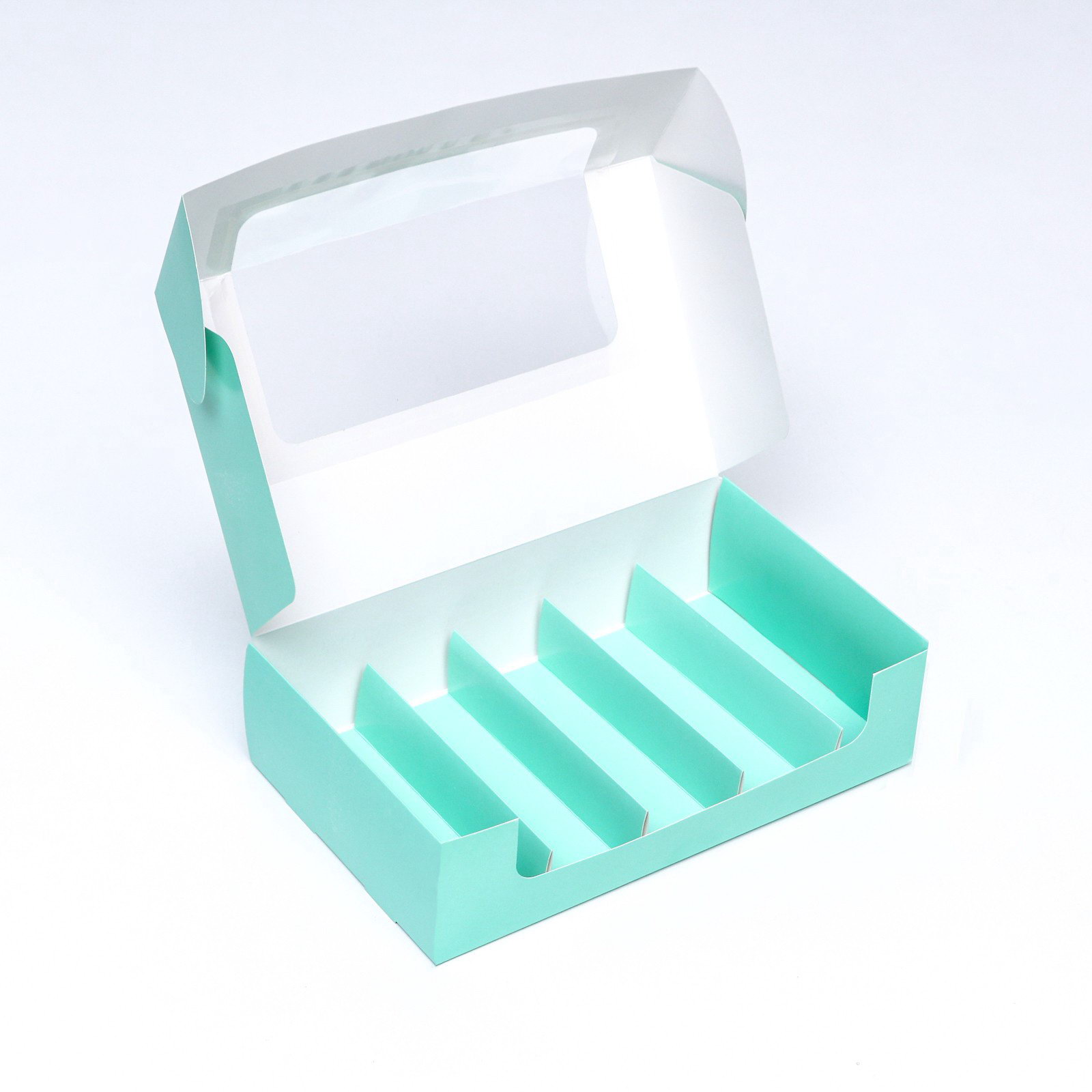 Коробка складная с окном под 5 эклеров зеленая, 25x15x6.6 см, UPAK LAND, Китай