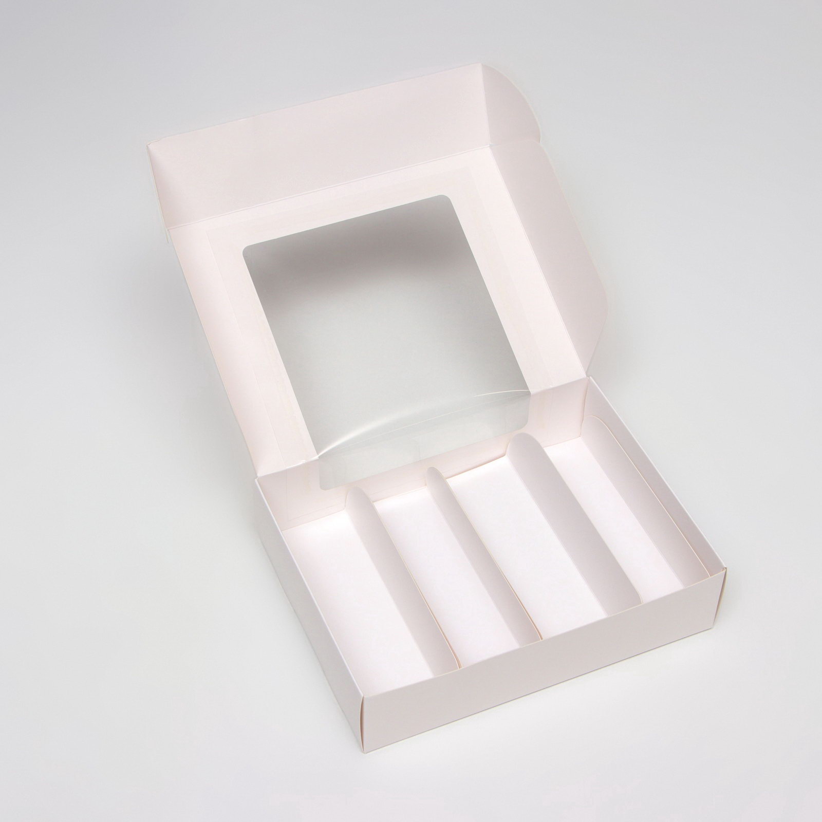 Коробка складная, под 4 эклера, белая, с окном, 20x15x5 см, 15x20x5 см., UPAK LAND, Китай