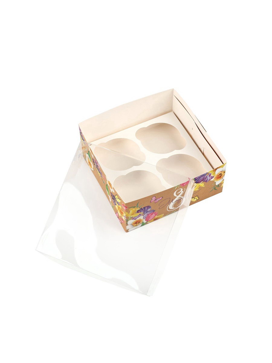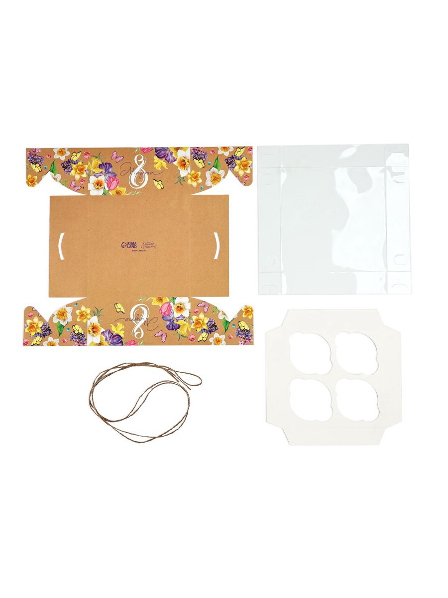 Коробка для капкейков, кондитерская упаковка, 4 ячейки "С 8 марта", 16 x 16 x 7.5 см, 16x16x7.5 см., Дарите Счастье, Китай