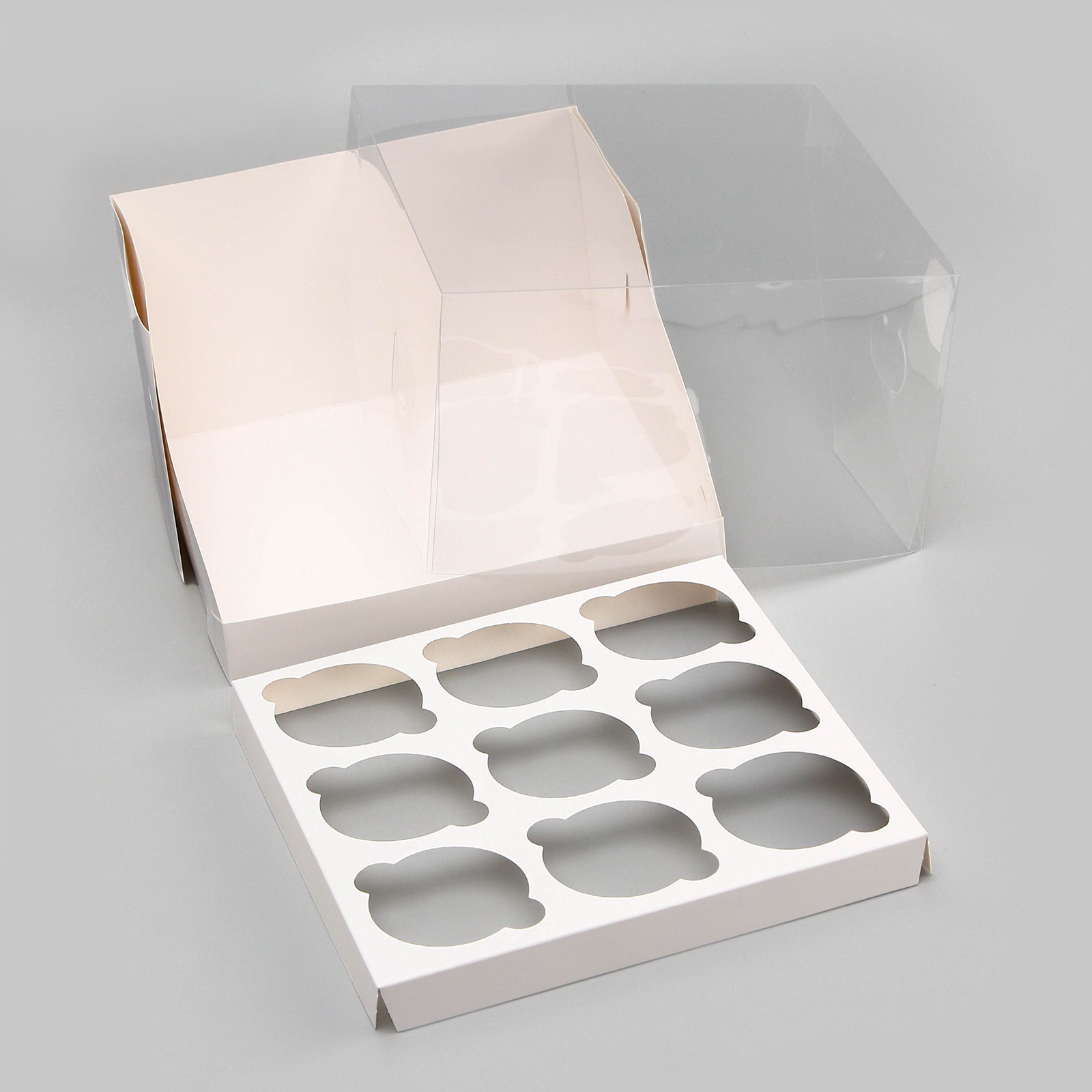 Коробка для 9 капкейков белая 23.5x23x14 см, 23x23.5x14 см., UPAK LAND, Китай