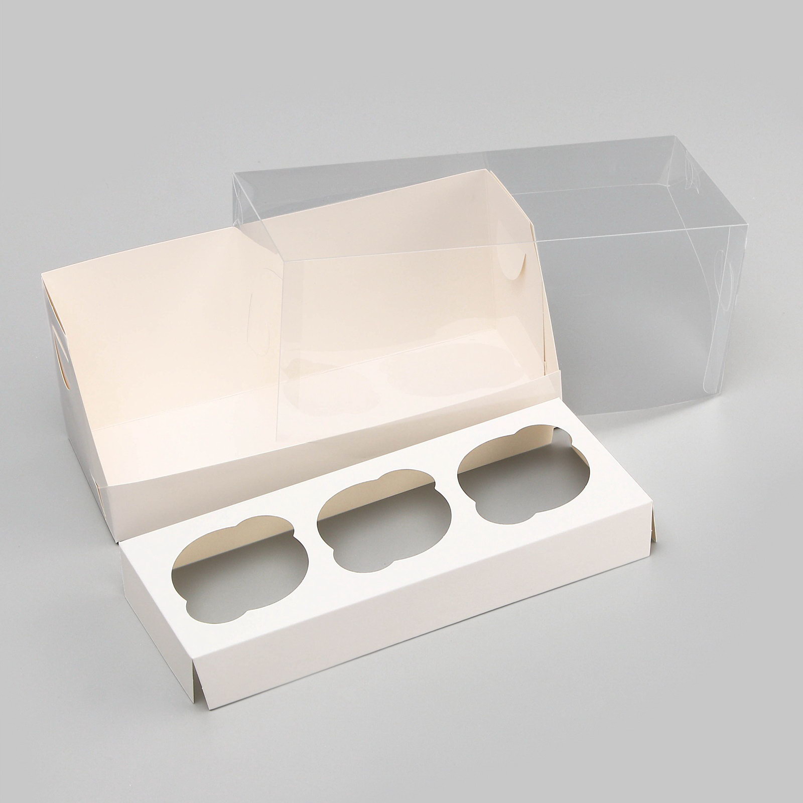Коробка для 3 капкейка 24x10x10 см, белый, 10x24x10 см., UPAK LAND, Китай