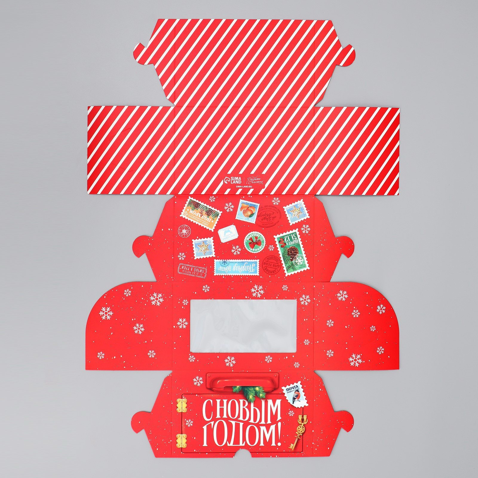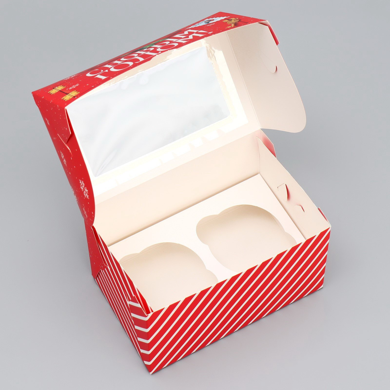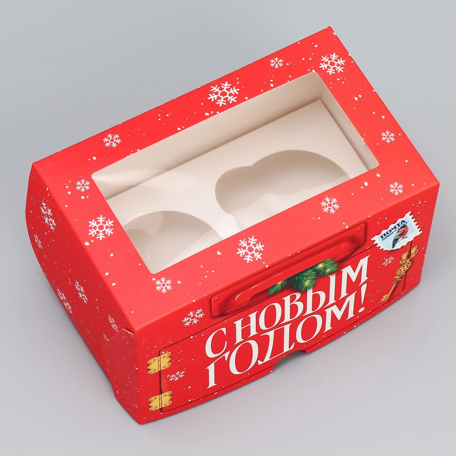 Коробка складная на 2 капкейка с окном "С Новым годом!", почта. 10 x 16 x 10 см, 16x10x10 см., Дарите Счастье, Китай