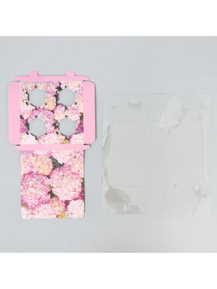 Коробка для капкейка, кондитерская упаковка, 4 ячейки, "Гортензии", золото, 16 x 16 x 11.5 см, 16x16x11.5 см., Дарите Счастье, Китай