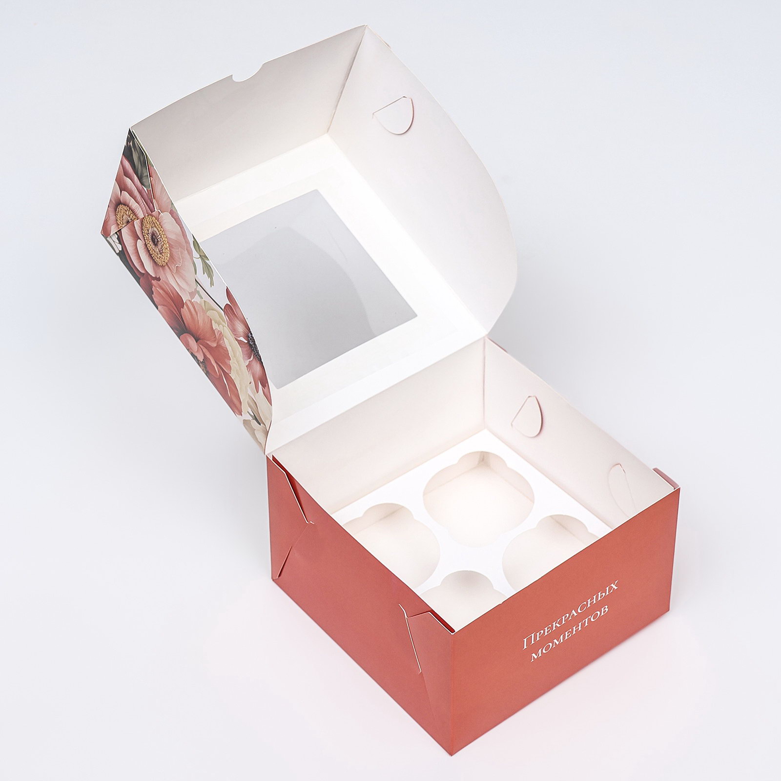 Коробка для 4 капкейков с окном, "Самой прекрасной", 16x16x10 см, UPAK LAND, Китай