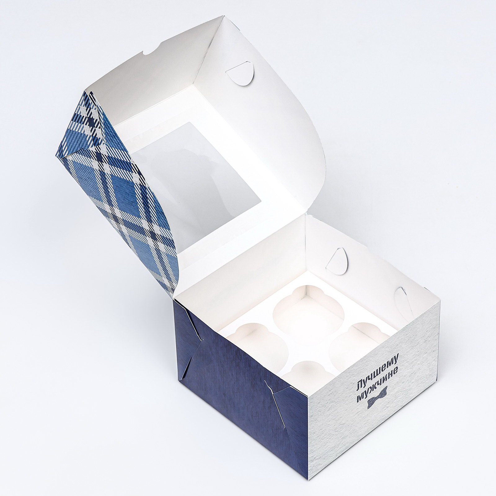 Коробка для 4 капкейков с окном, "Лучшему мужчине", 16x16x10 см, UPAK LAND, Китай