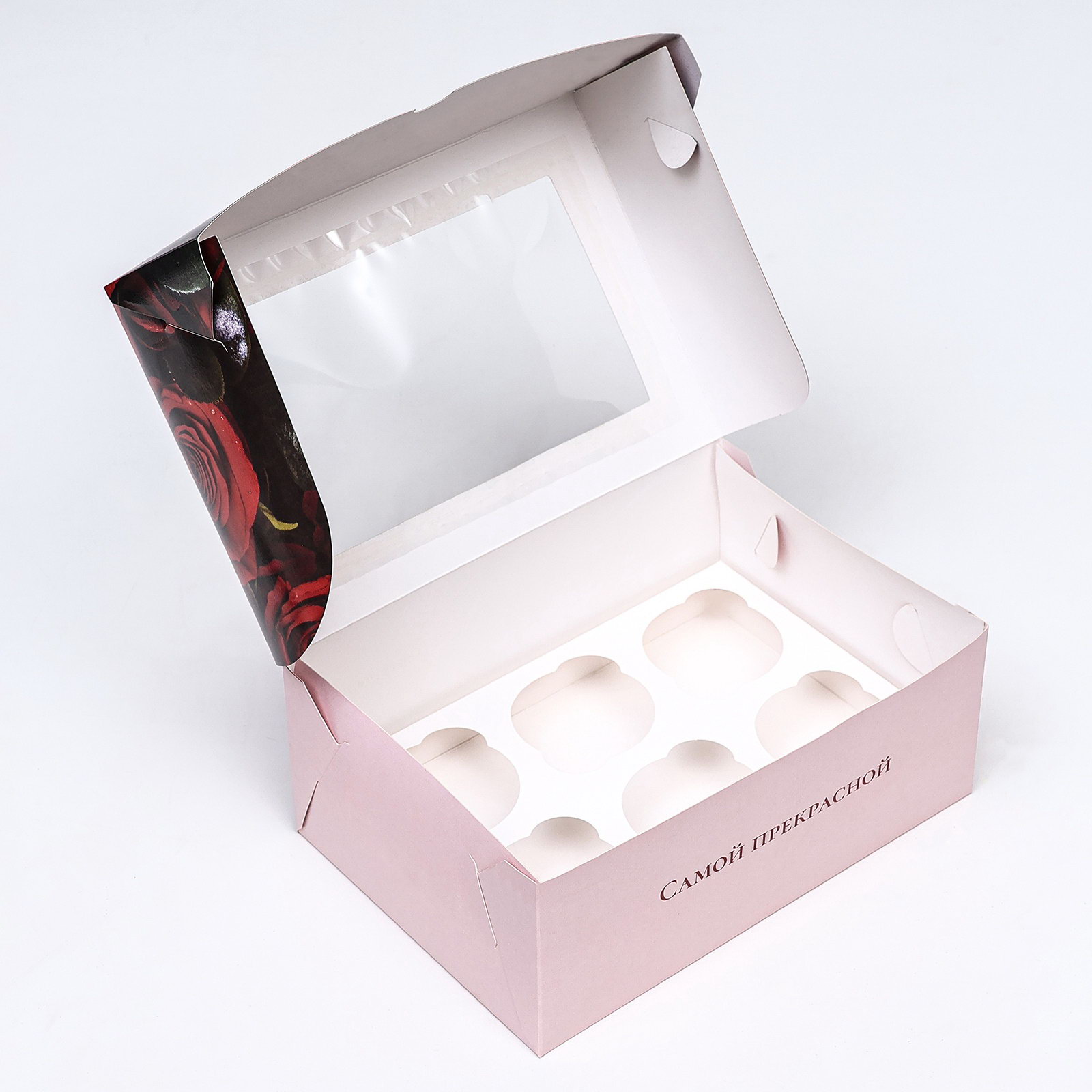 Коробка для 6 капкейков с окном, "Розы", 25x17x10 см, UPAK LAND, Китай