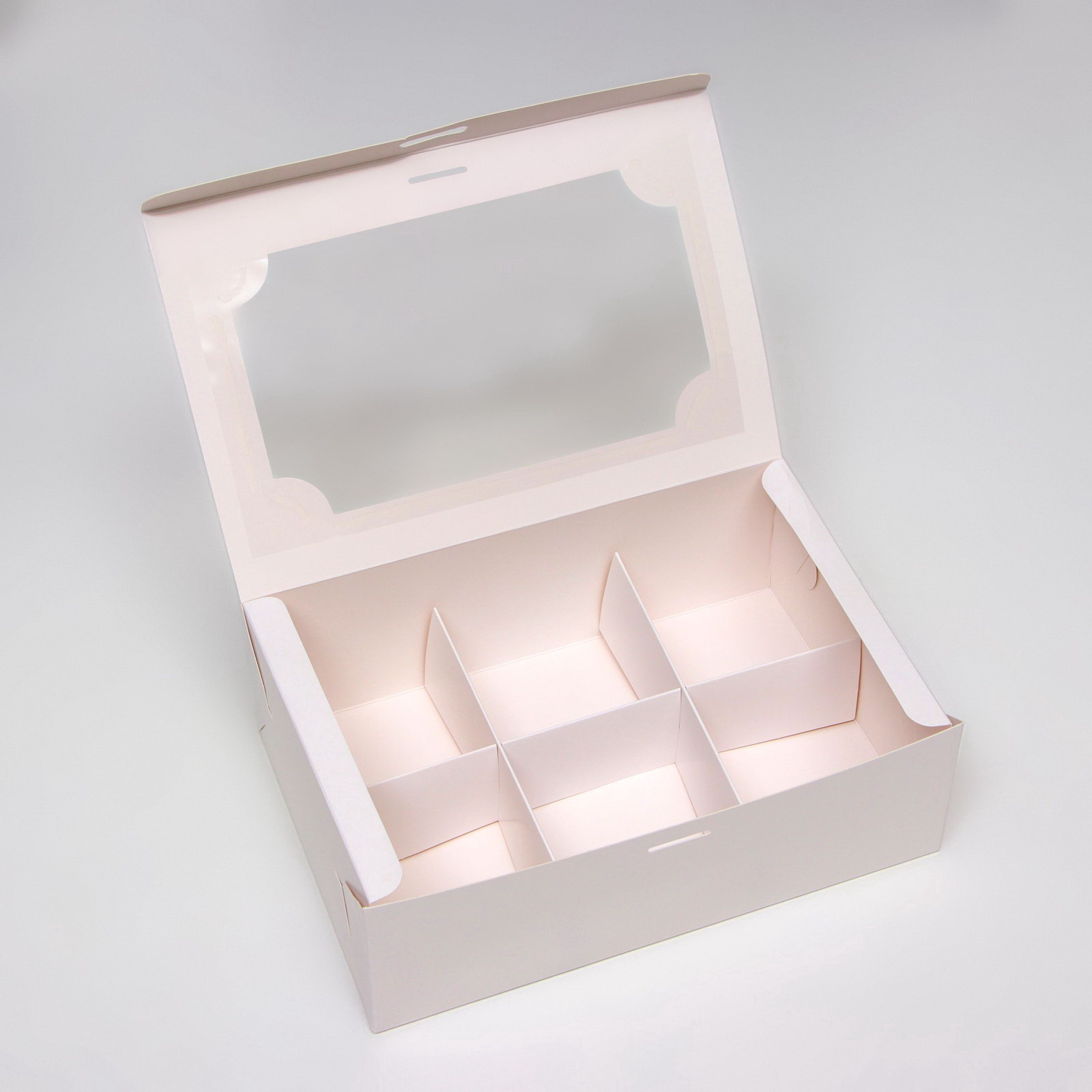 Коробка для 6 пирожных, белая, 24x16x8 см, 16x24x8 см., UPAK LAND, Китай