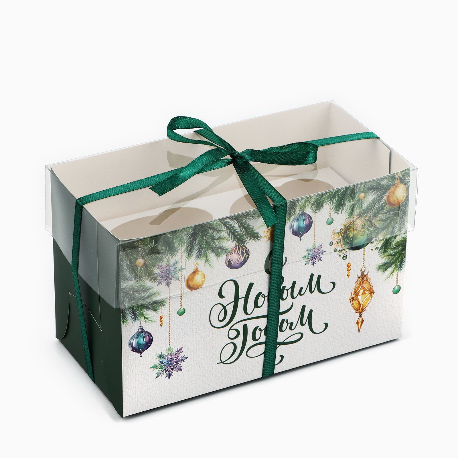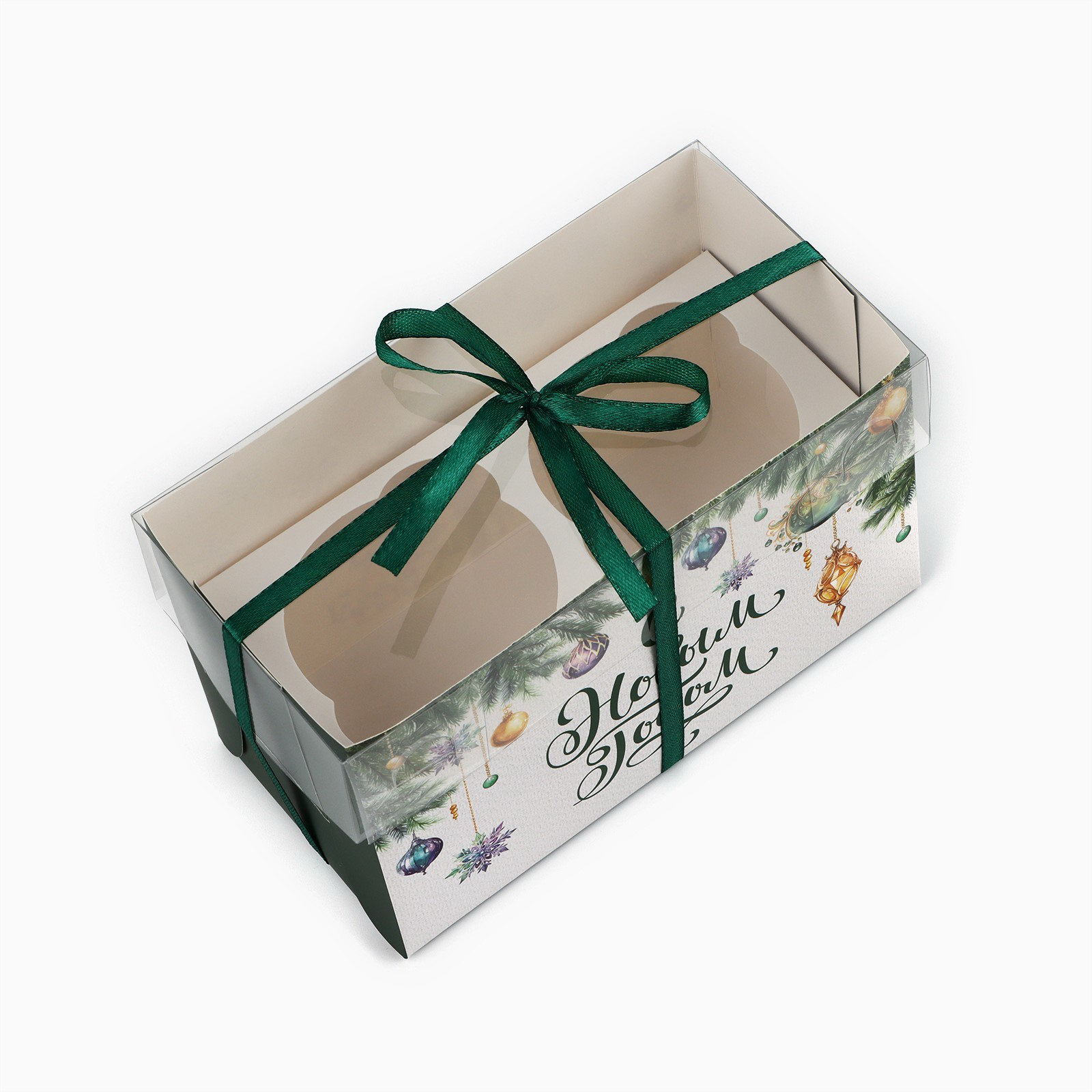 Коробка для капкейка "Новогодние истории", 16 x 8 x 10 см, 8x16x10 см., Дарите Счастье, Китай