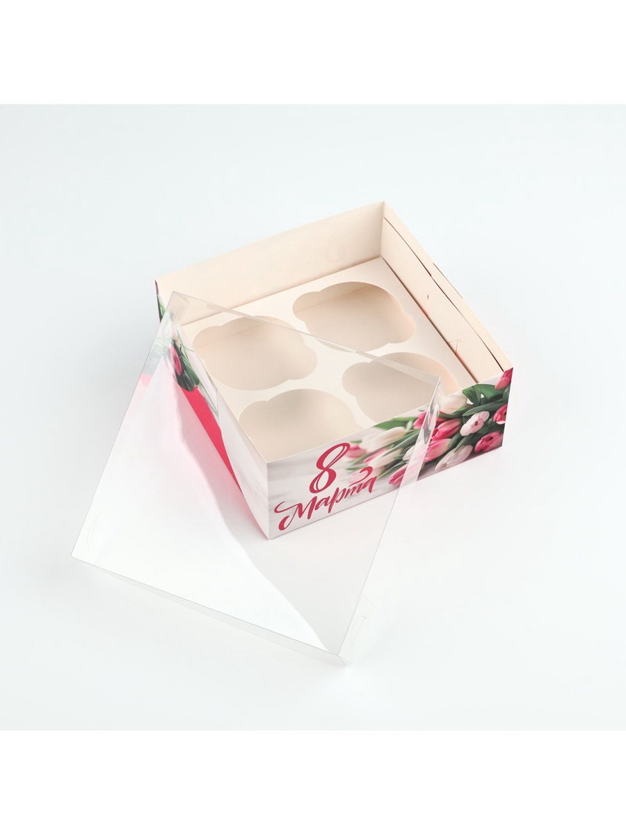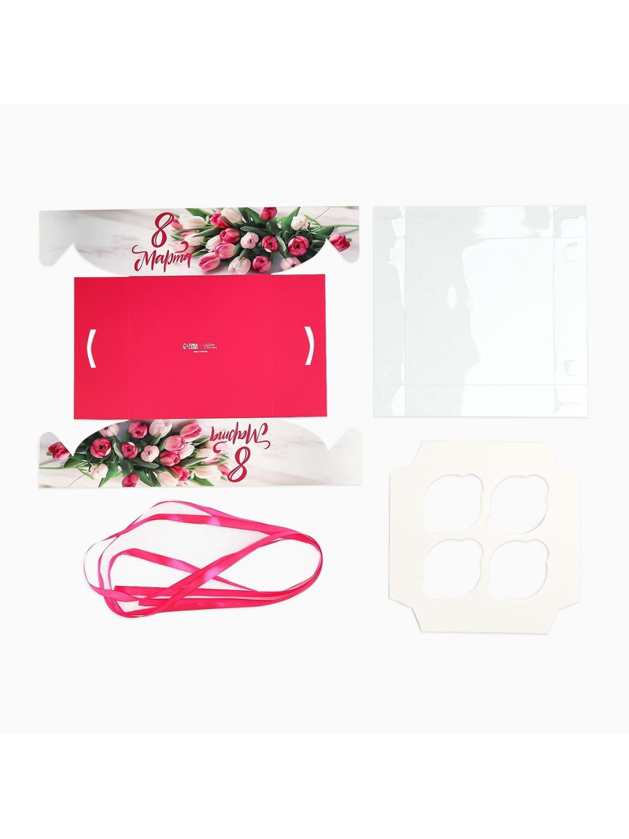Коробка для капкейка "8 марта", 16 x 16 x 7.5 см, 16x16x7.5 см., Дарите Счастье, Китай