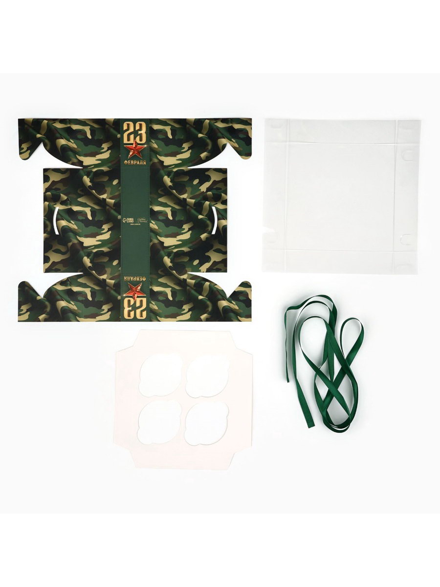 Коробка для капкейка "23 февраля", 16x16x7.5 см, 16x16x7.5 см., Дарите Счастье, Китай