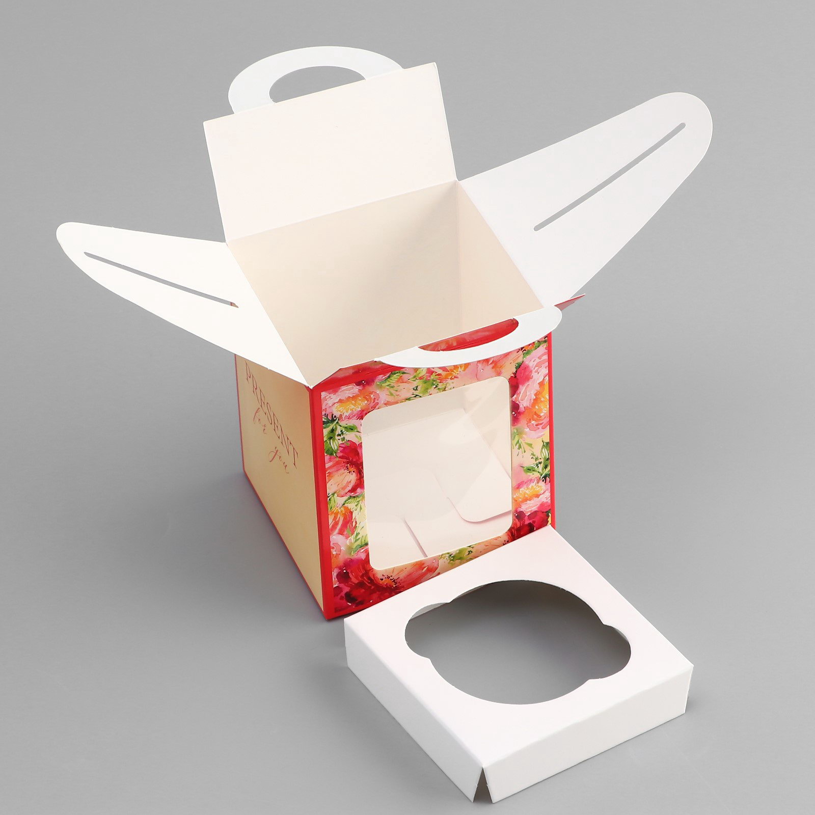 Коробка для 1 капкейка, "Презент", 9.2x9.2x11.1 см, 9.2x9.2x11.1 см., UPAK LAND, Китай