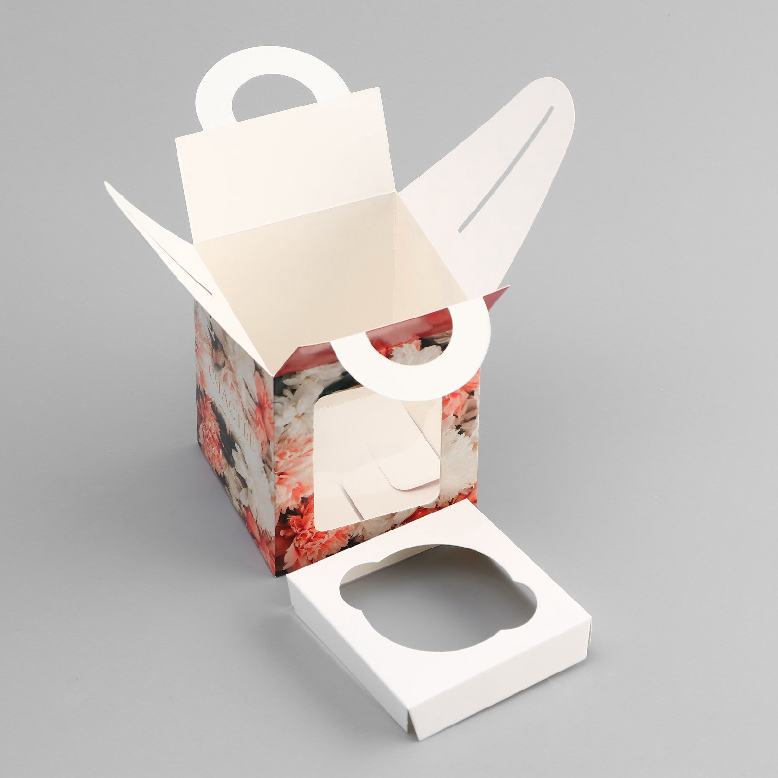 Коробка для 1 капкейка, "Цветочки", 9.2x9.2x11.1 см, 9.2x9.2x11.1 см., UPAK LAND, Китай