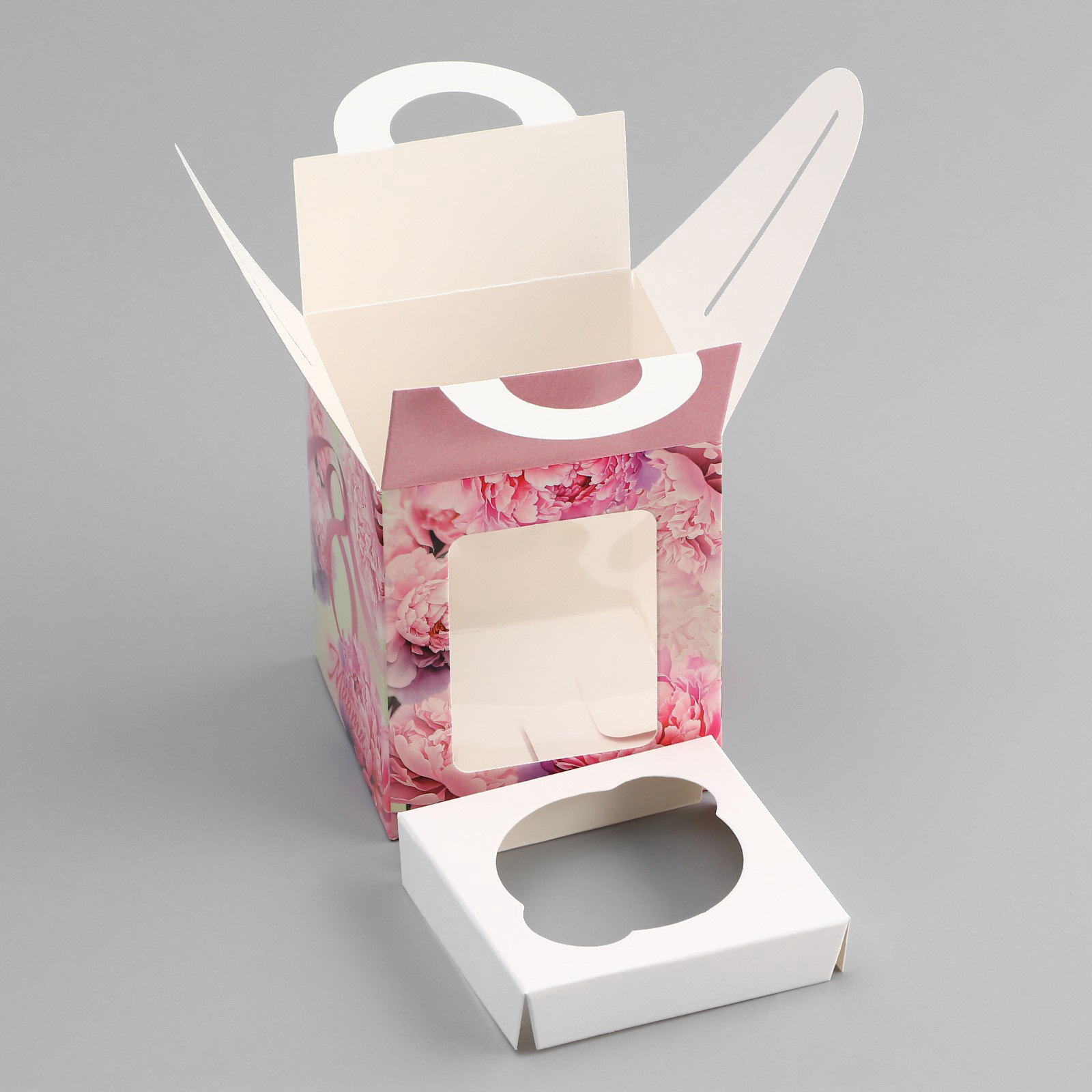 Коробка для 1 капкейка, "8 марта", 9.2x9.2x11.1 см, 9.2x9.2x11.1 см., UPAK LAND, Китай