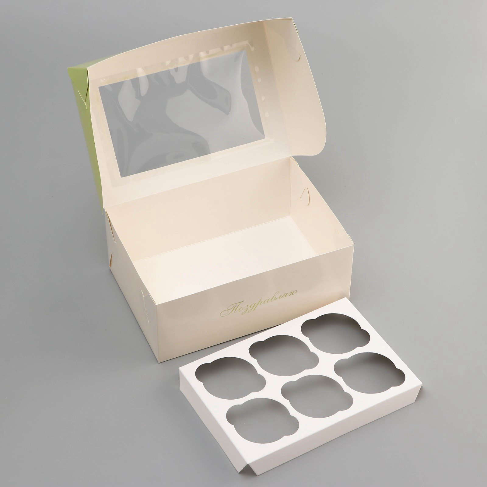 Коробка для 6 капкейков с окном, "8 марта", 25x17x10 см, 17x25x10 см., UPAK LAND, Китай
