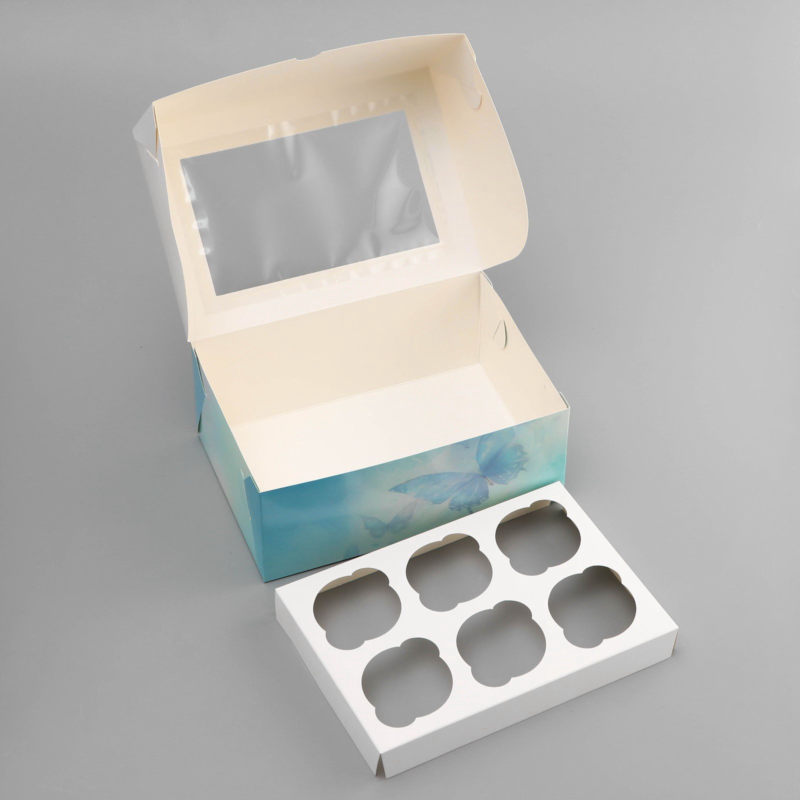 Коробка для 6 капкейков с окном, "Прекрасных моментов", 25x17x10 см, кондитерская упаковка, 17x25x10 см., UPAK LAND, Китай