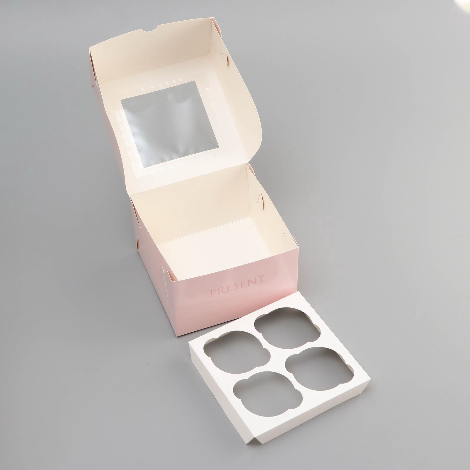 Коробка под 4 капкейка с окном, "Прекрасной", 16x16x10 см, 16x16x10 см., UPAK LAND, Китай