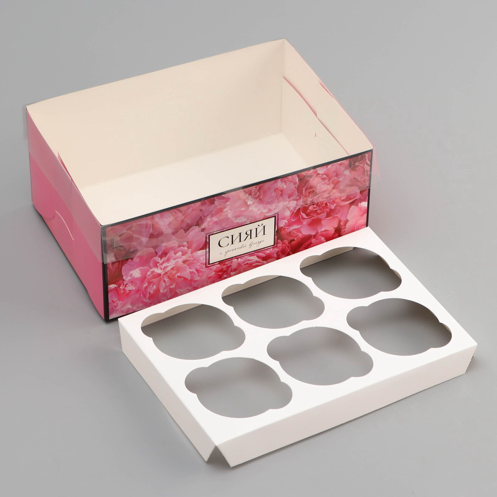Коробка для 6 капкейков с прозрачной крышкой, "Сияй от счастья", 23x16x10 см, 16x23x10 см., UPAK LAND, Китай