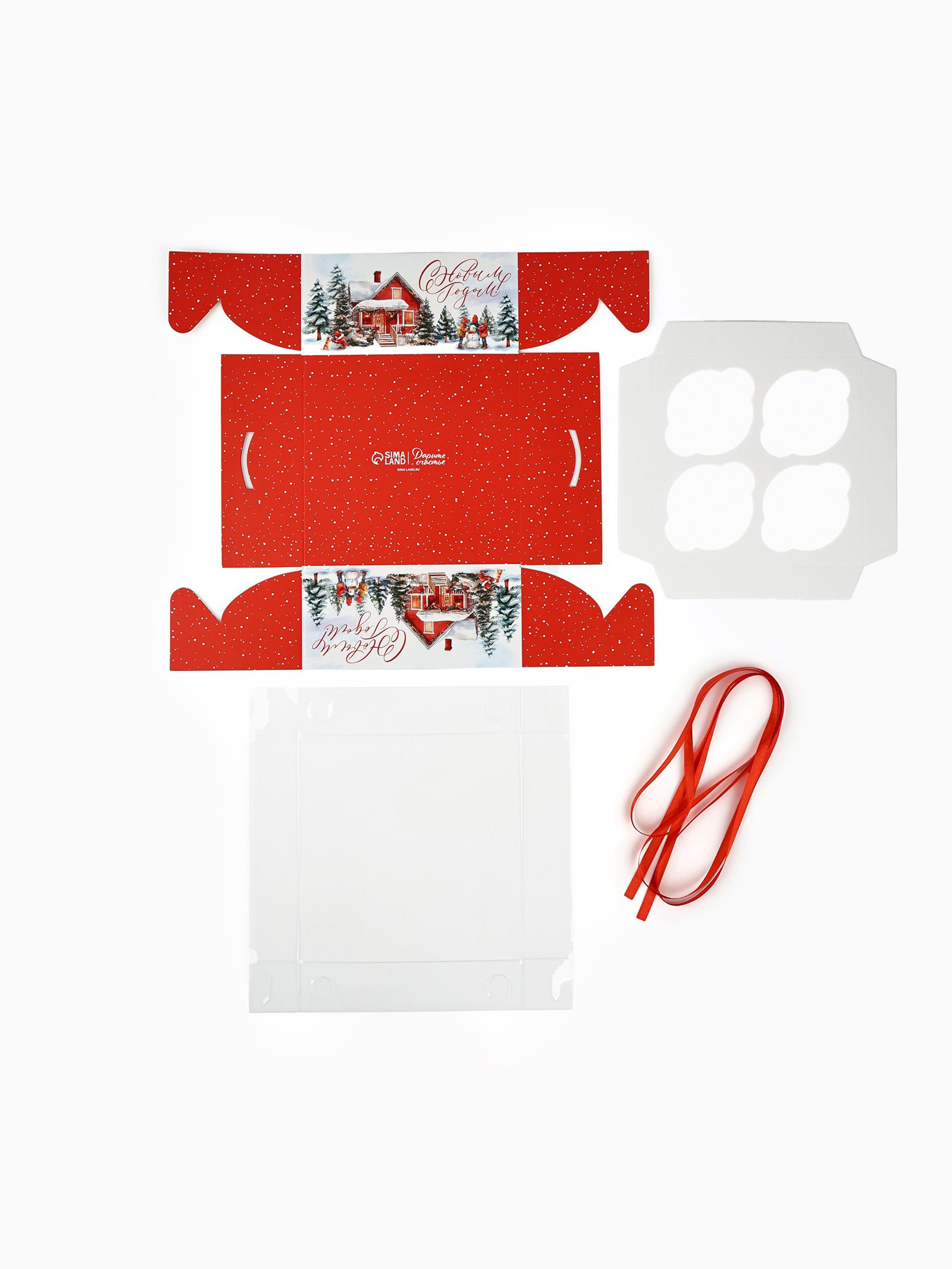 Коробка для капкейка "Счастливого Нового года!", 16x16x7.5 см, 16x16x7.5 см., Дарите Счастье, Китай