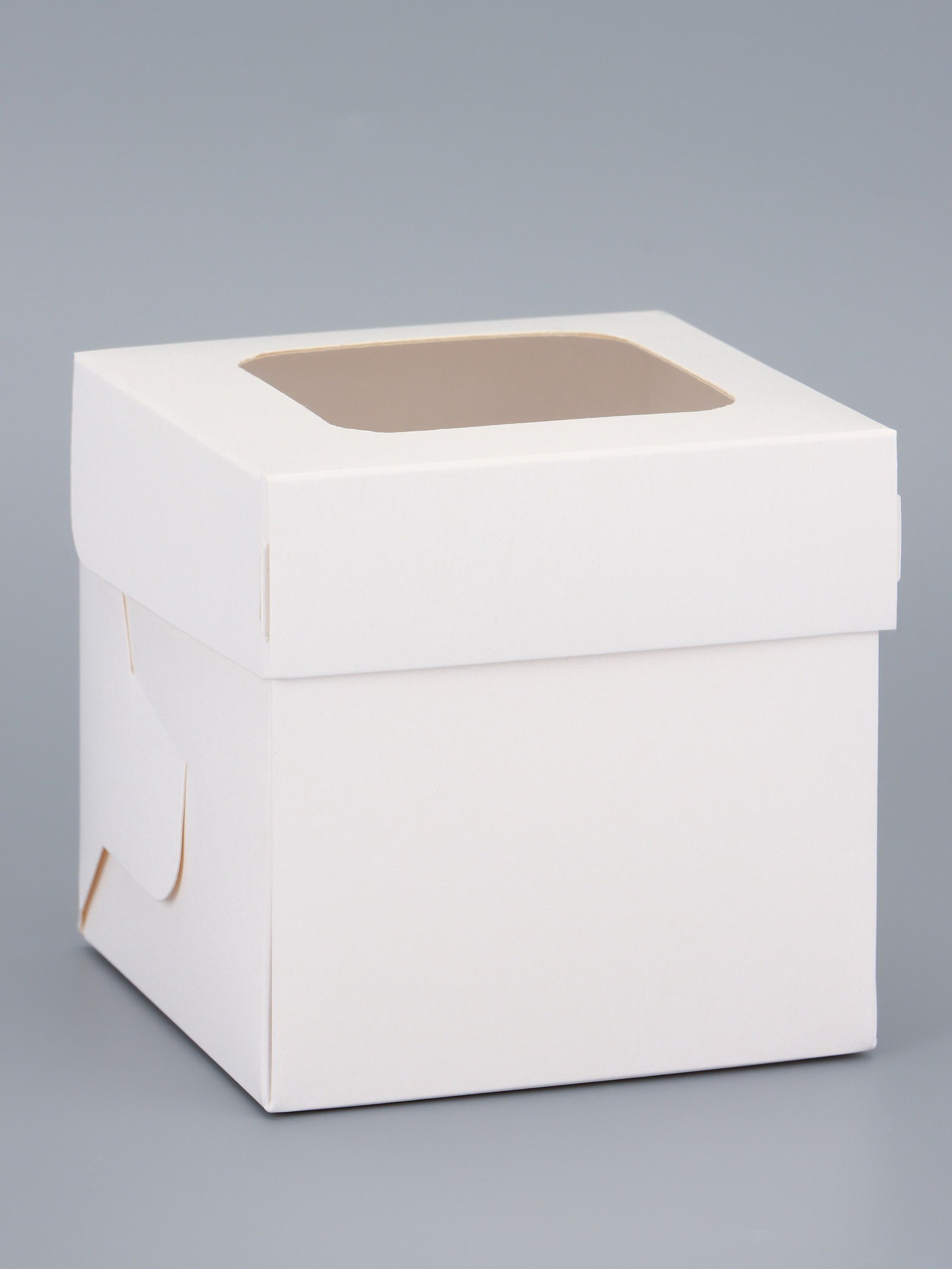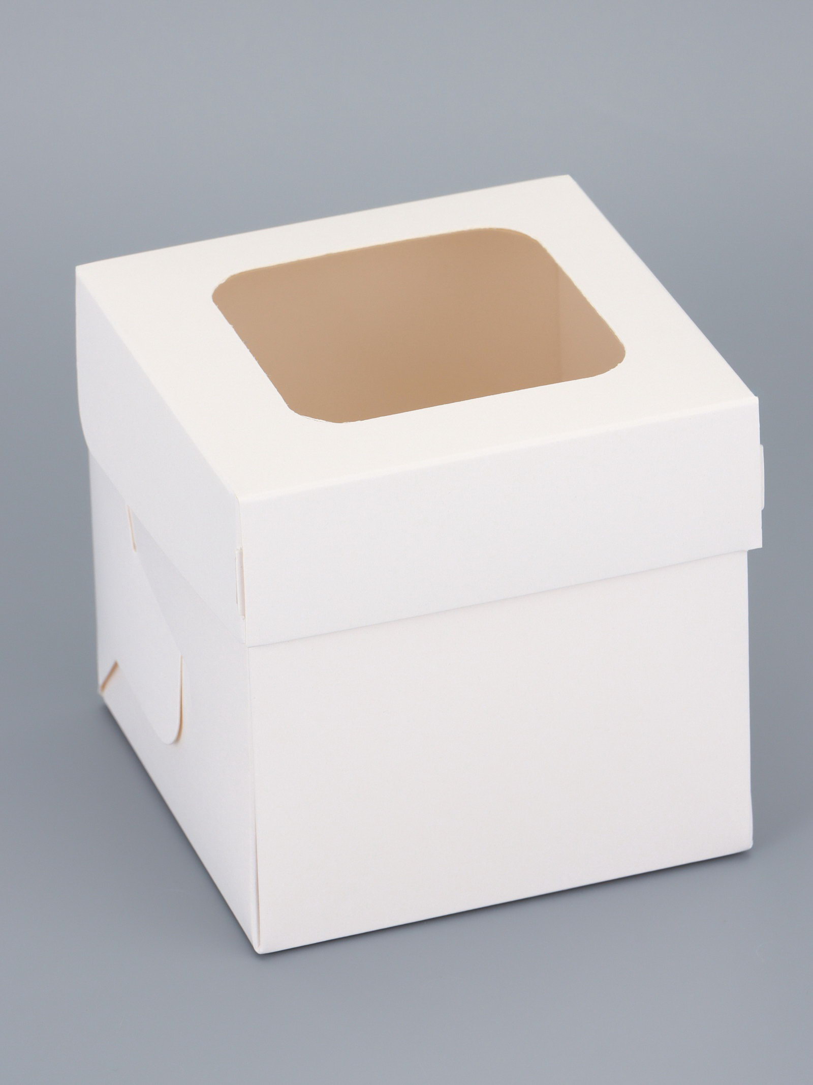 Коробка под 1 капкейк, белая, с ПВХ окном, 11x11x11.1 см, UPAK LAND, Россия