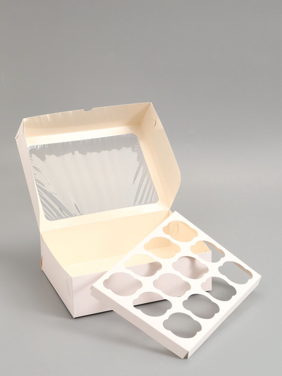 Коробка под 12 капкейков с окном, белая 32.5x25.5x10 см, 5 шт., UPAK LAND, Россия