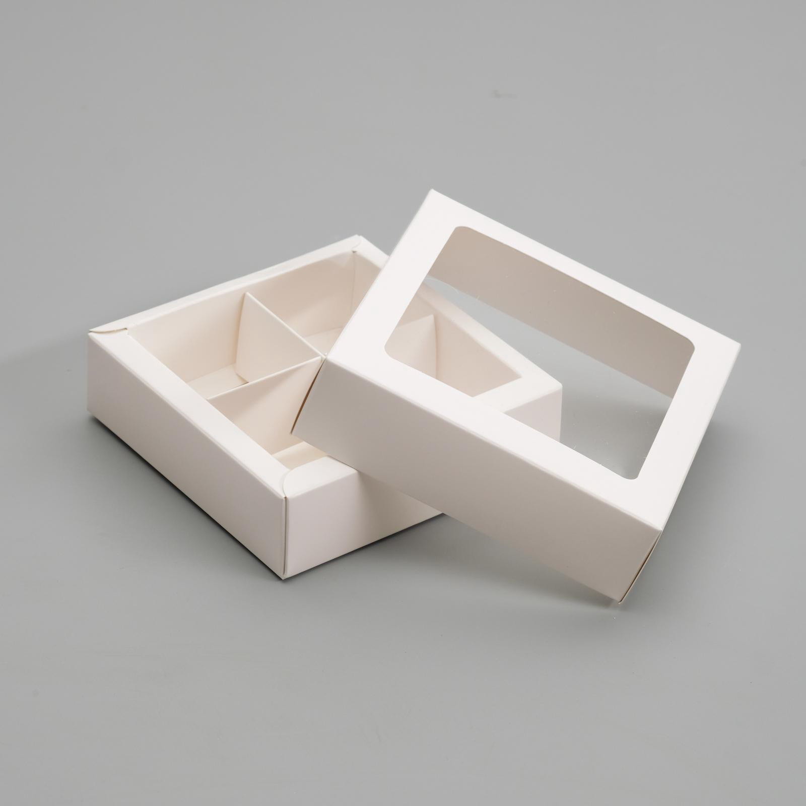 Коробка для конфет 4 шт., с окном, белая 12.5x12.5x3.5 см, Россия