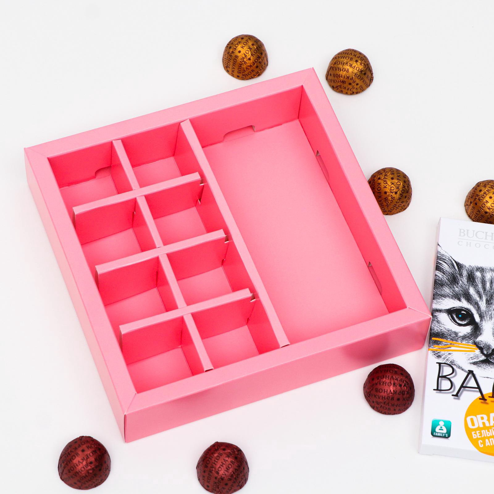 Коробка под 8 конфет + шоколад, с окном, розовая, 17.7x17.85x3.85 см, UPAK LAND, Россия