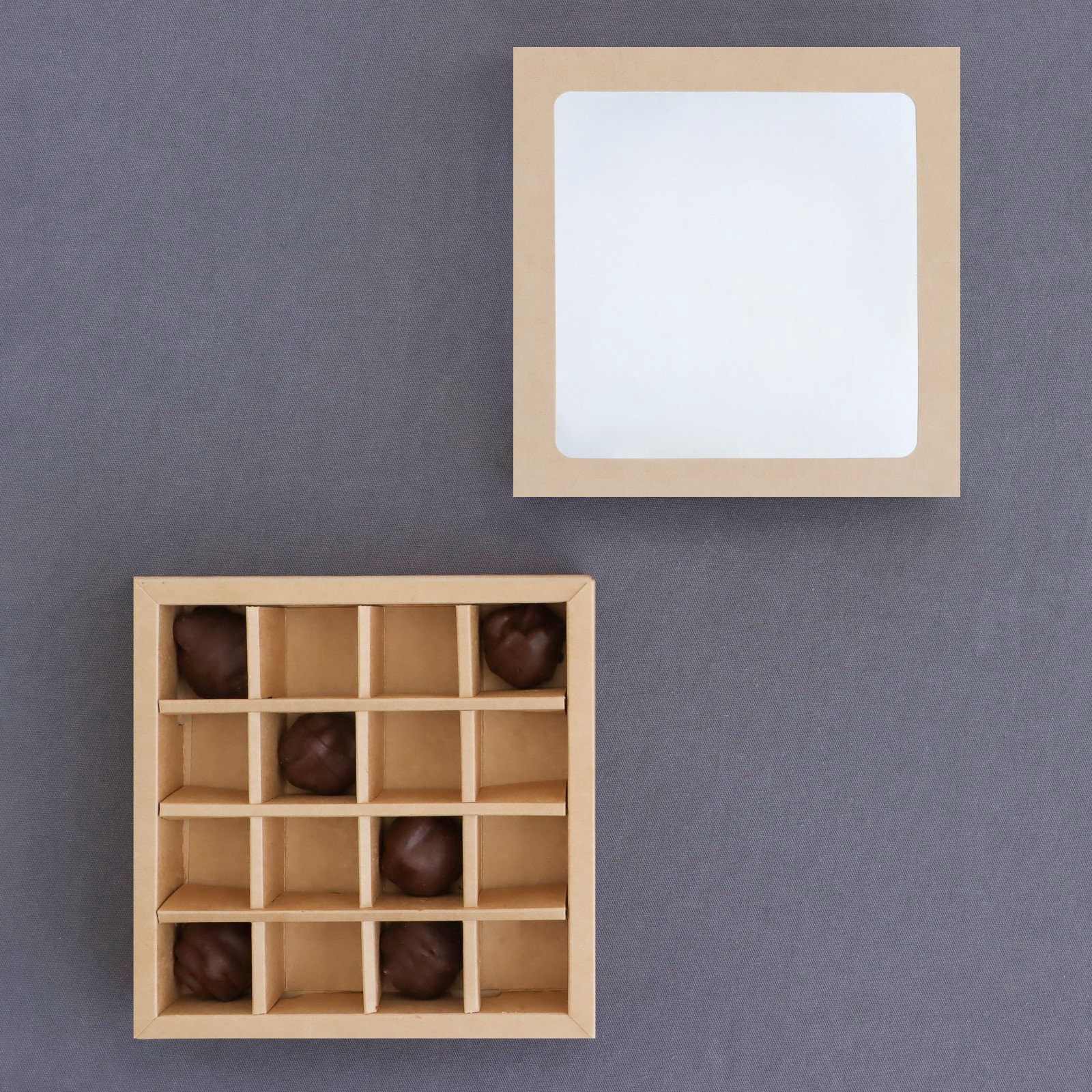 Коробка для 16 конфет, крафт 17.7x17.7x3.8 см, 17.7x17.7x3.8 см., UPAK LAND, Китай