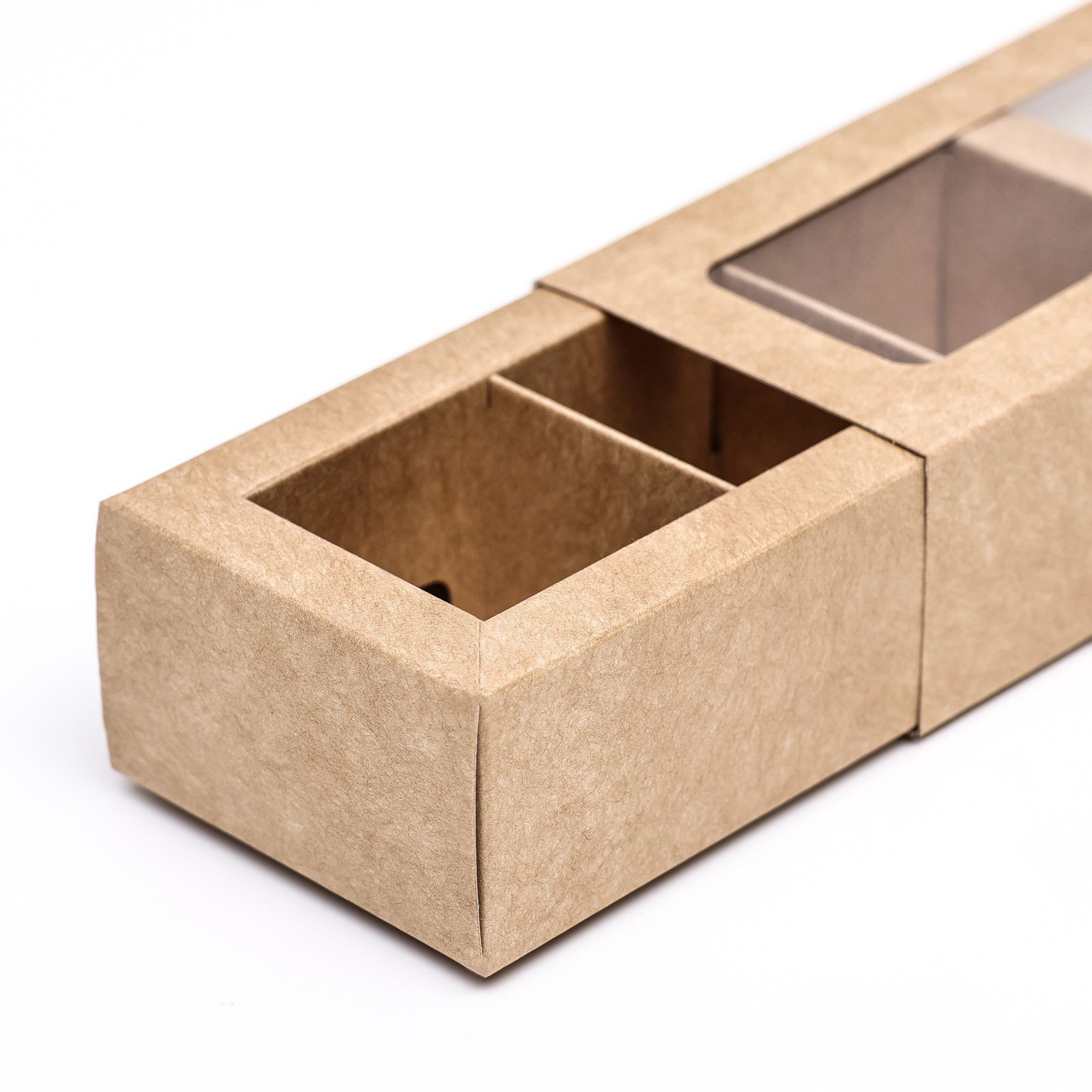 Коробка с обечайкой с окном "Под 3 конфеты" 13x5x3.3 см, крафт, UPAK LAND, Россия