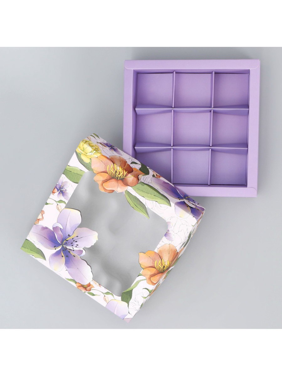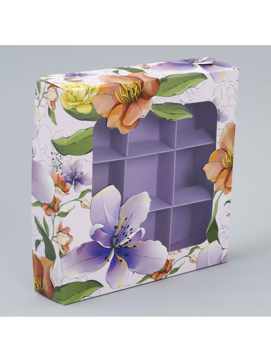 Коробка для конфет, кондитерская упаковка, 9 ячеек, "Для тебя", 14.7x14.7x3.5 см, 14.7x14.7x3.5 см., Дарите Счастье, Китай