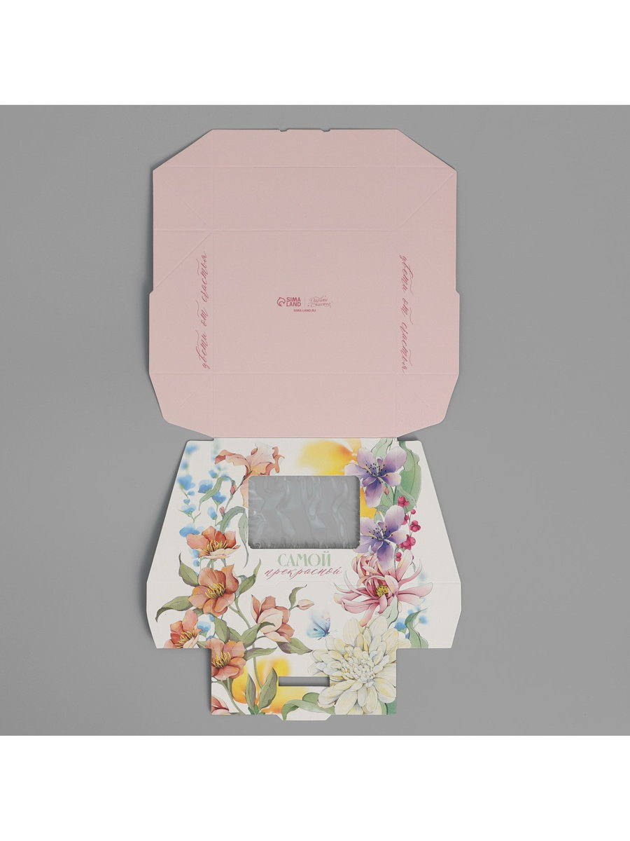 Кондитерская упаковка, коробка с ламинацией "Цветы", 10 x 8 x 3.5 см, Дарите Счастье, Россия