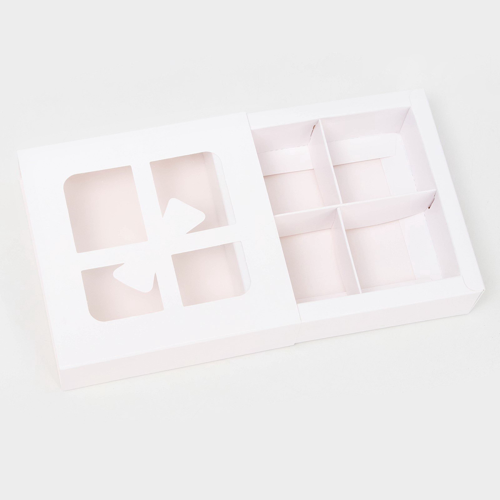 Коробка для 4 конфеты "Бантик", белый 12.5x12.5x3.5 см, 12.5x12.5x3.5 см., UPAK LAND, Китай