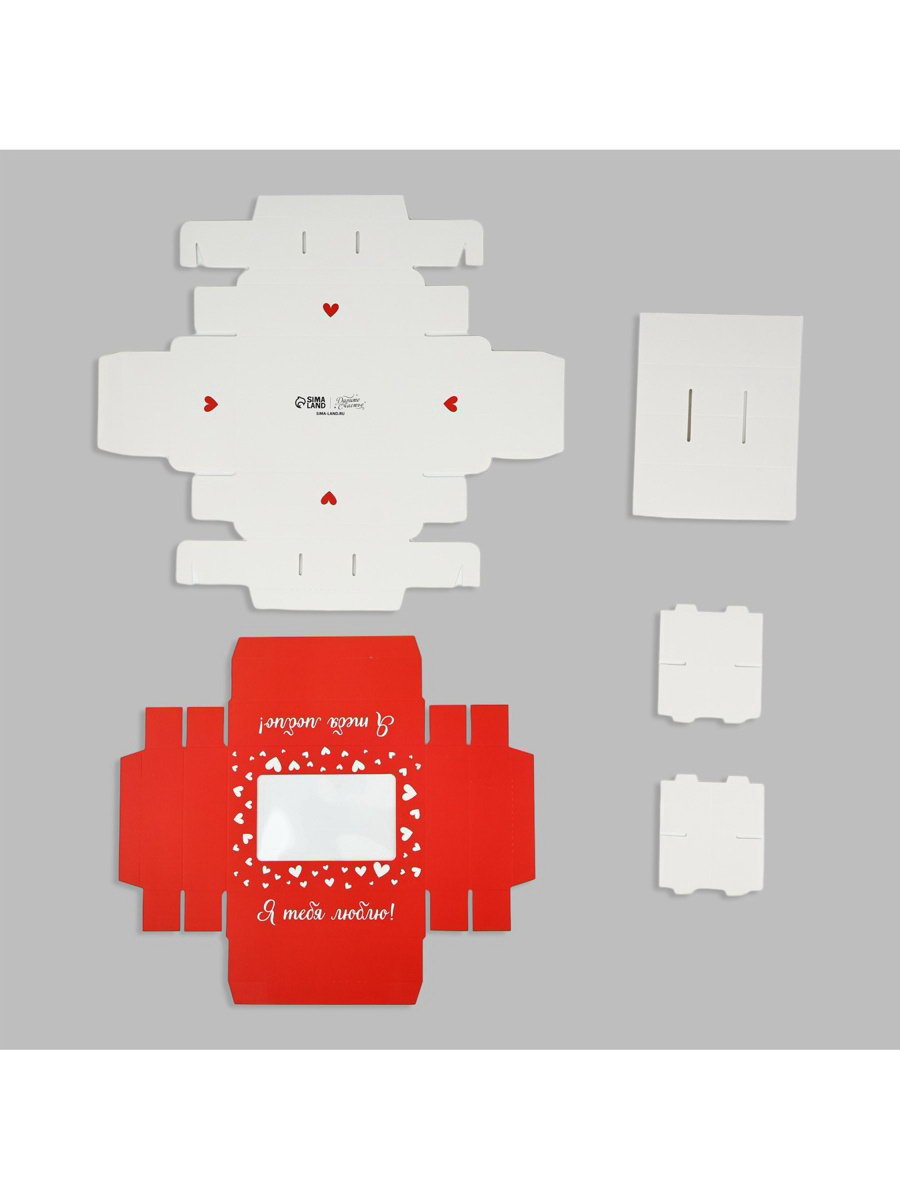 Коробка складная под 6 конфет "Я тебя люблю!", 13.5x9.8x3.8 см, 9.8x13.5x3.8 см., Дарите Счастье, Китай