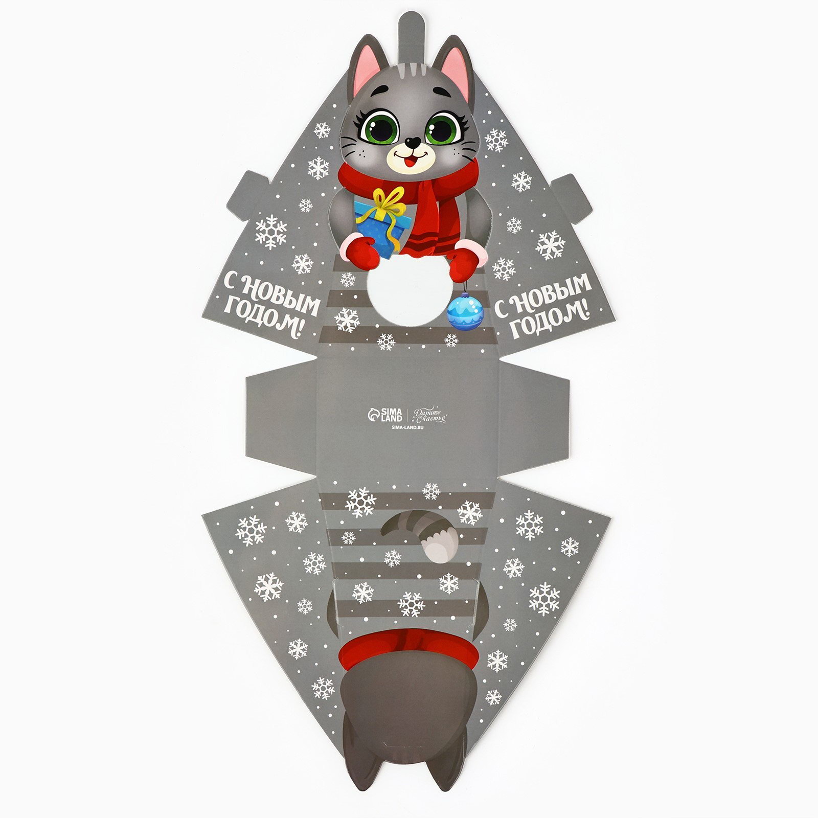 Коробка новогодняя складная с окном "Котик", 9 x 15.5 x 6 см, 15.6x9x6 см., Дарите Счастье, Китай
