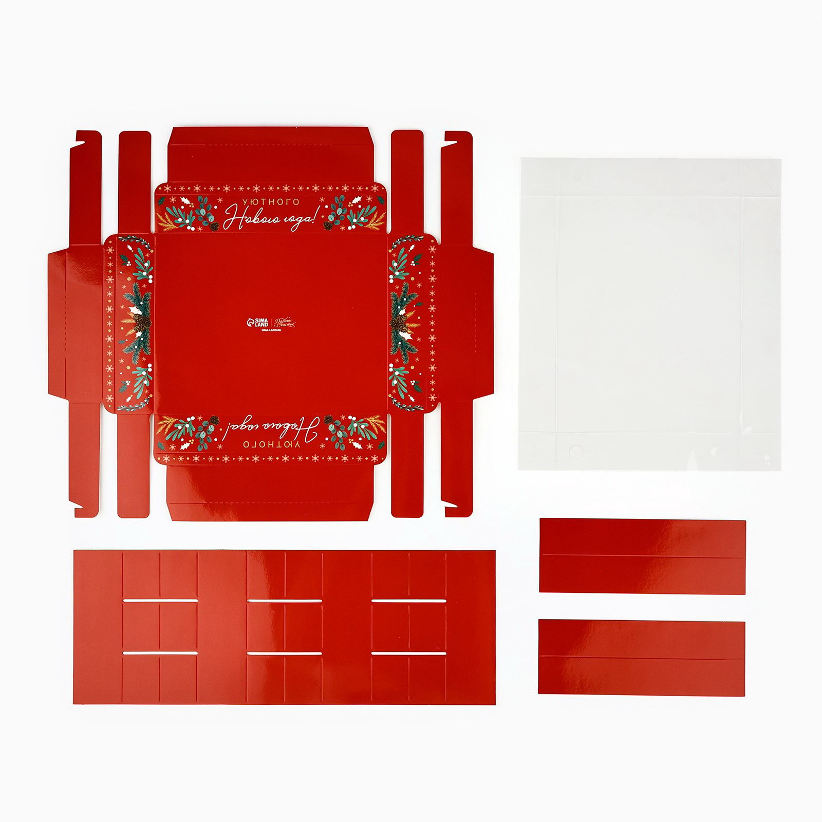 Коробка под 12 конфет с ячейками "Уютного Нового года", 14.5 x 18.5 x 3 см, 18.8x14.6x3.1 см., Дарите Счастье, Китай
