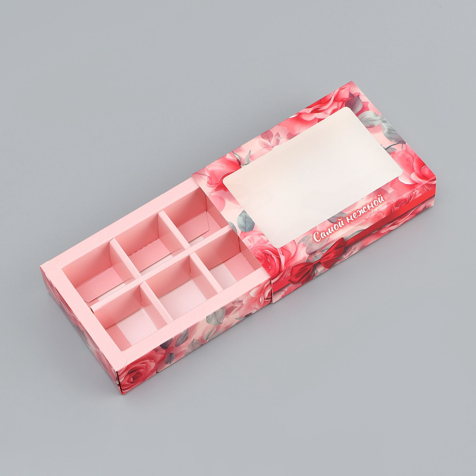 Коробка складная для 6 конфет "Самой нежной", 13.7x9.8x3.8 см, 9.8x13.7x3.8 см., UPAK LAND, Китай