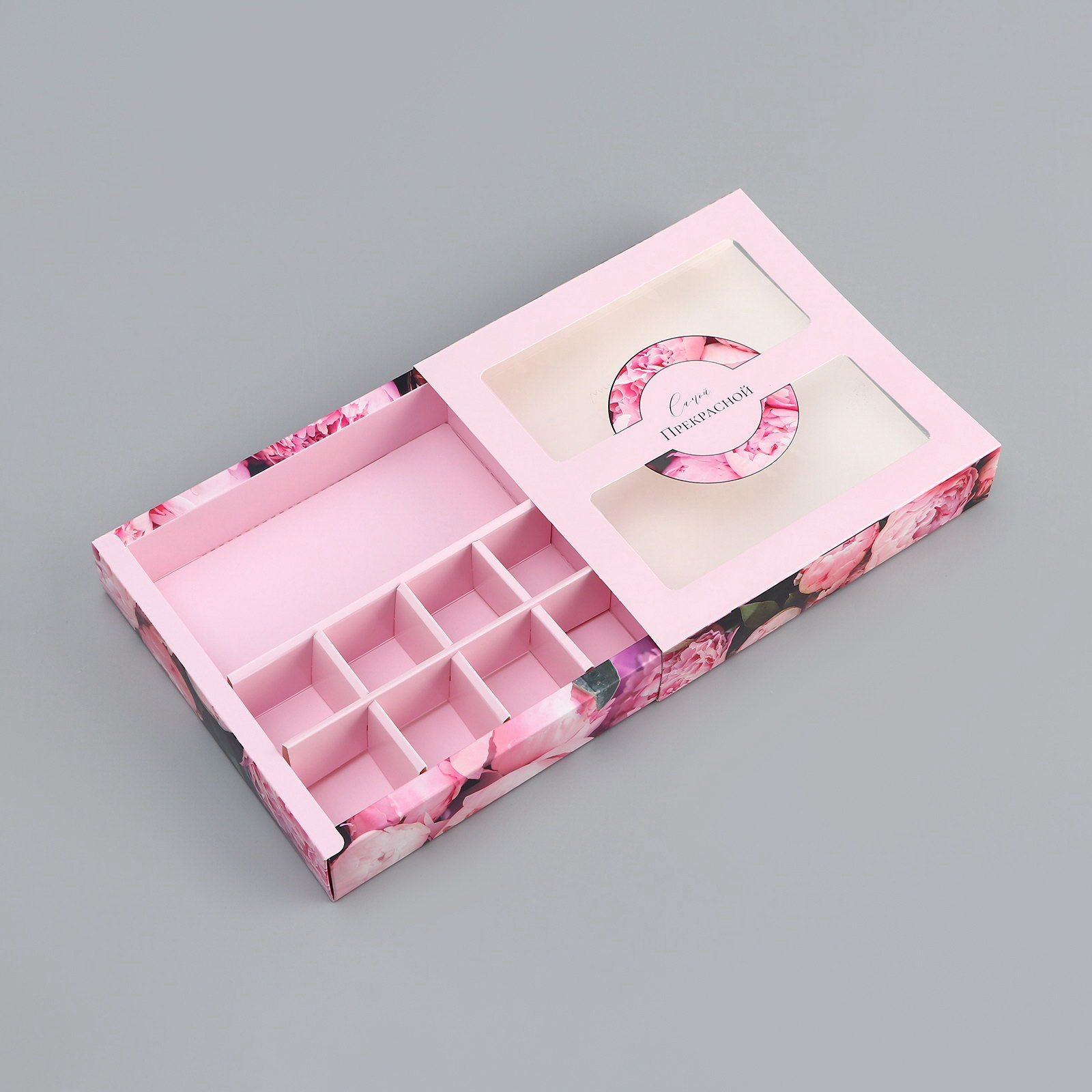 Коробка для 8 конфет + шоколад, с окном "Самой прекрасной", 17.7x17.8x3.8 см Кондитерская упаковка, 17.8x17.7x3.8 см., UPAK LAND, Китай